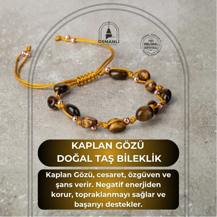 Kaplan Gözü Natürel Kesim Doğal Taş Makrome Bileklik