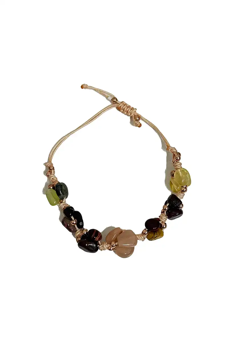 Pembe Kuvars Ametist Kehribar Aventurin Yeşim Sitrin Hematiy Makrome Bileklik Doğal Taş Bileklik
