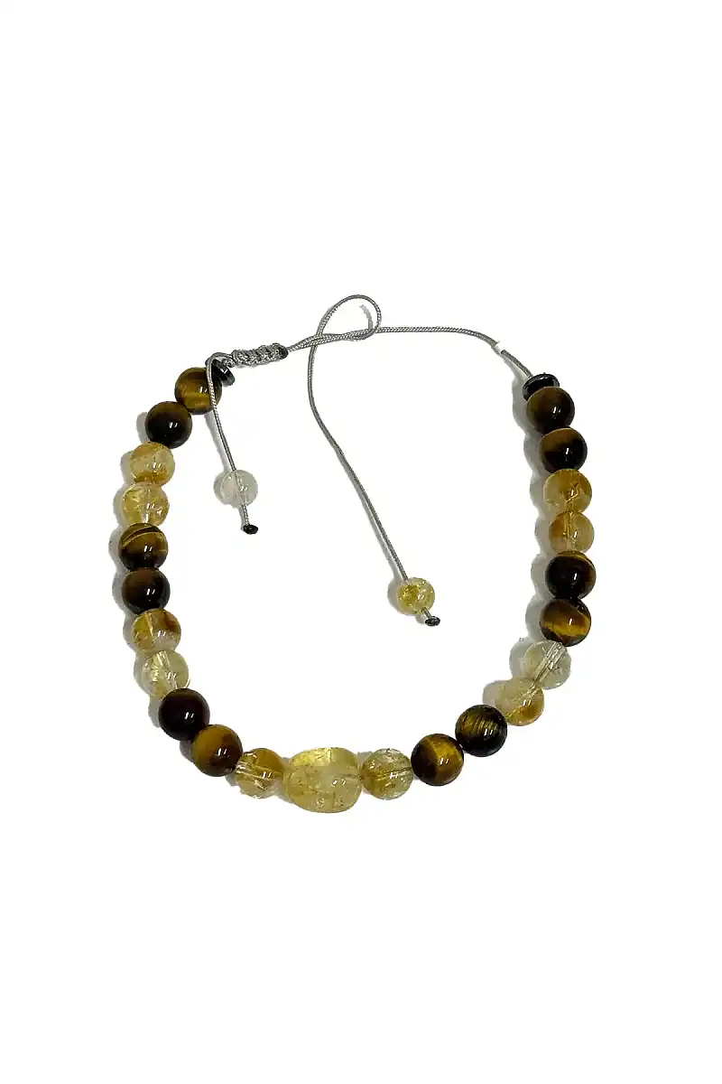 Kaplan Gözü Sitrin Makrome Bileklik Doğal Taş Bileklik