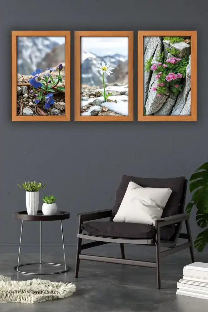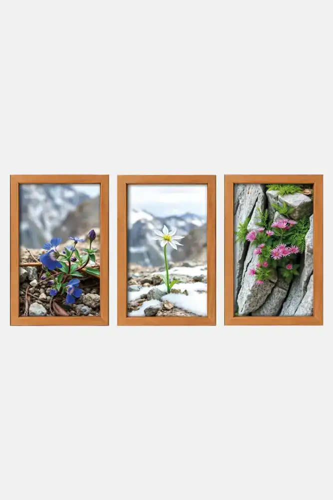 Set İçeriği: 3 adet tablo (dağ çiçekleri temalı tasarımlar)