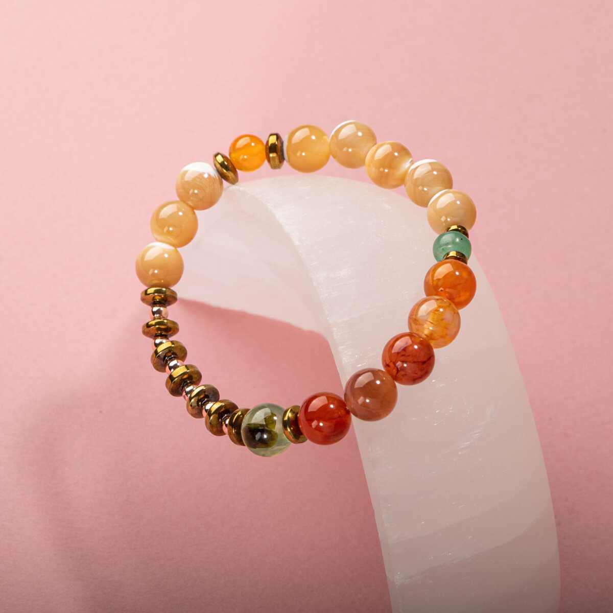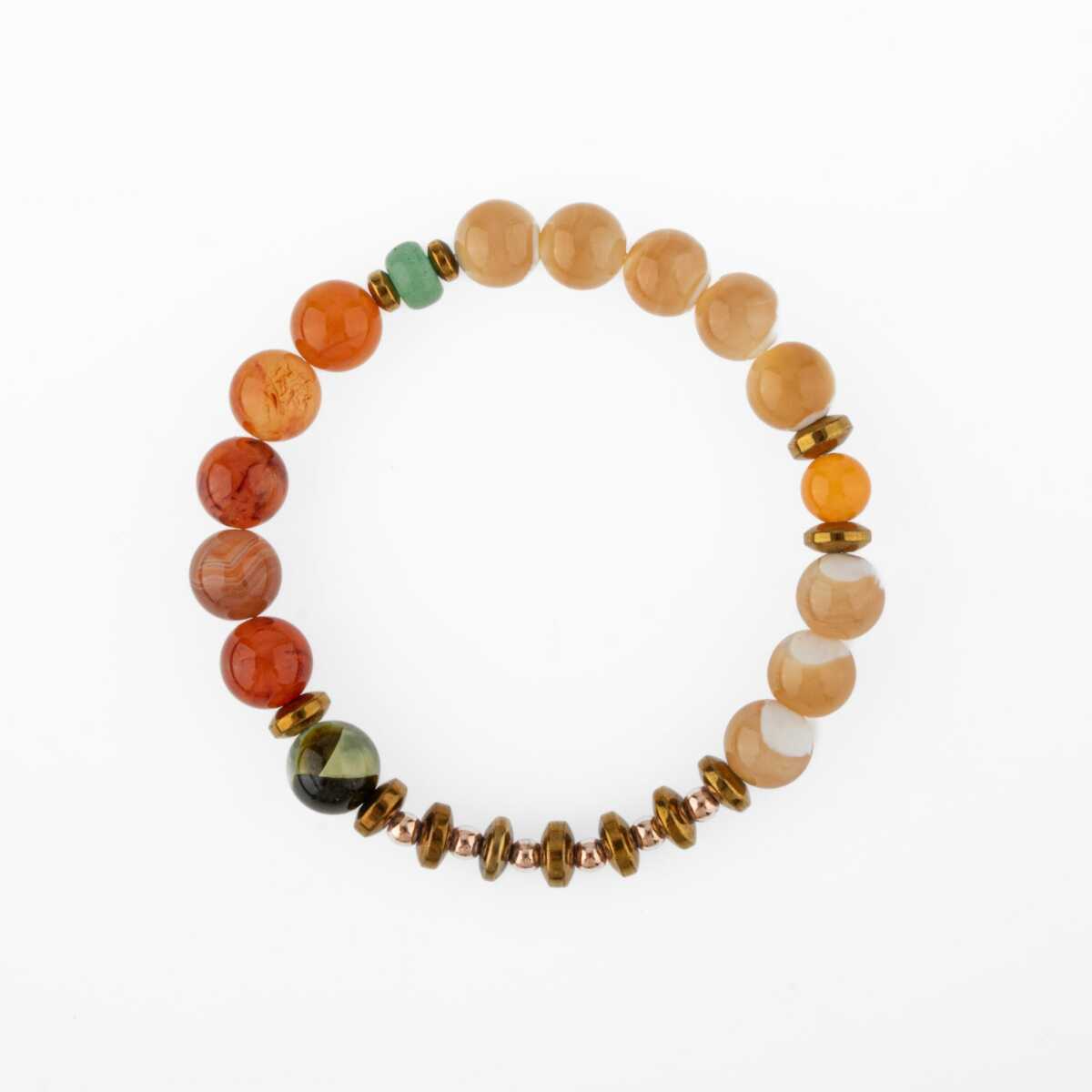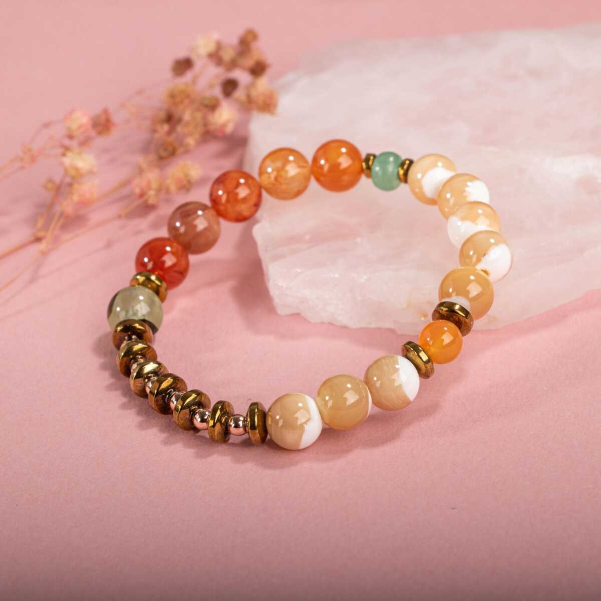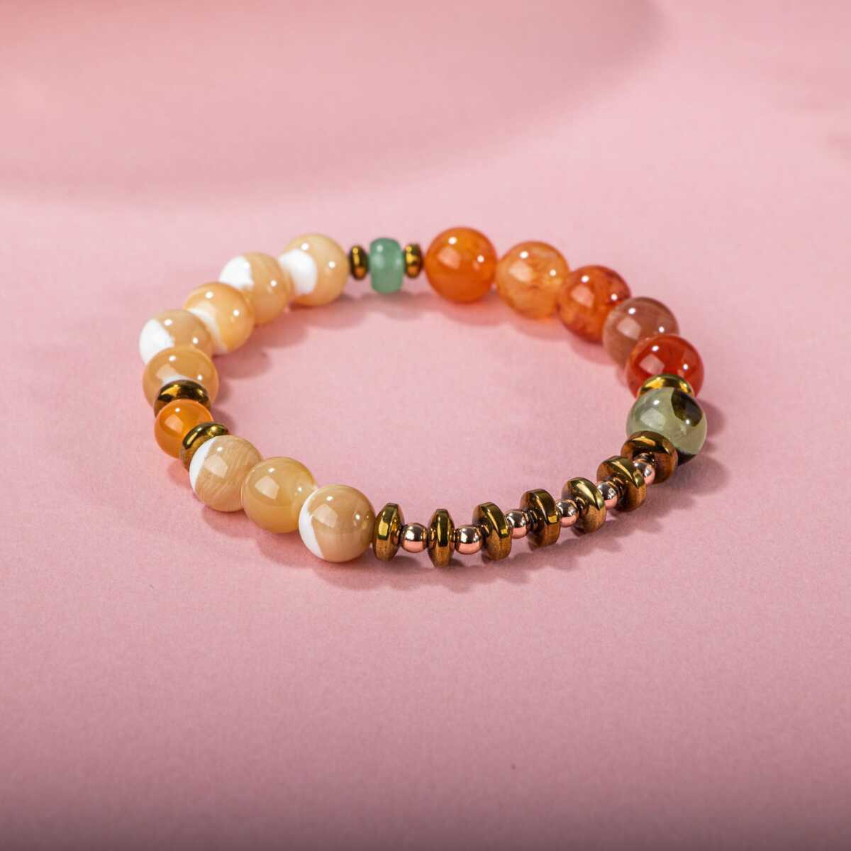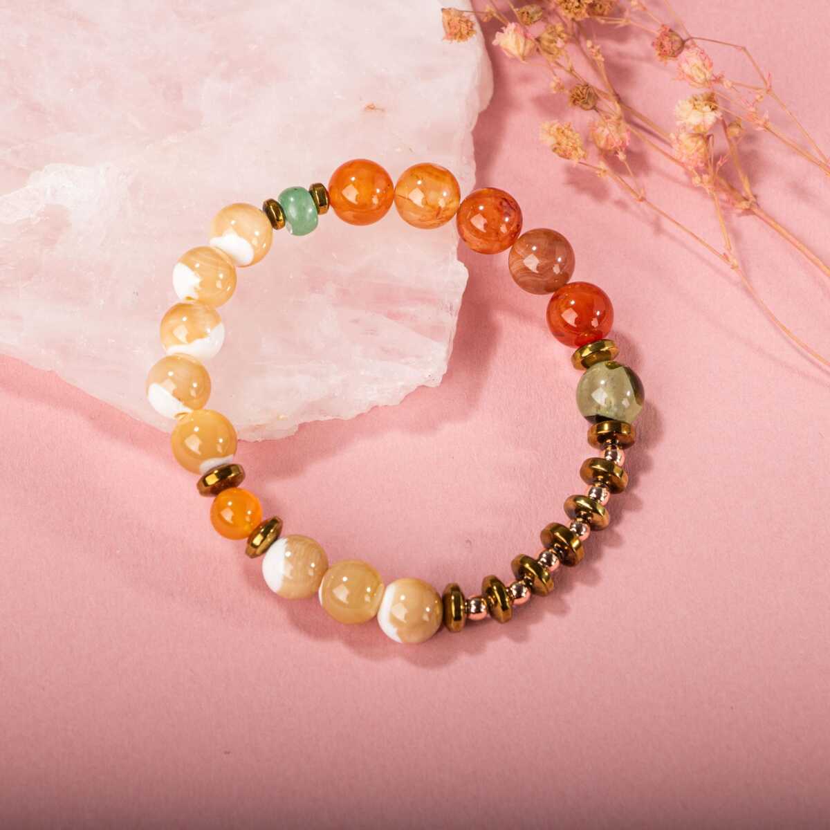 Karnelyan Akik-Turuncu Aventurin-Pehnit-Sedef-Hematit Doğal Taş Bileklik