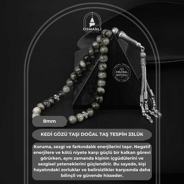 Kedi Gözü Doğal Taş Tesbih 33lük - 8mm