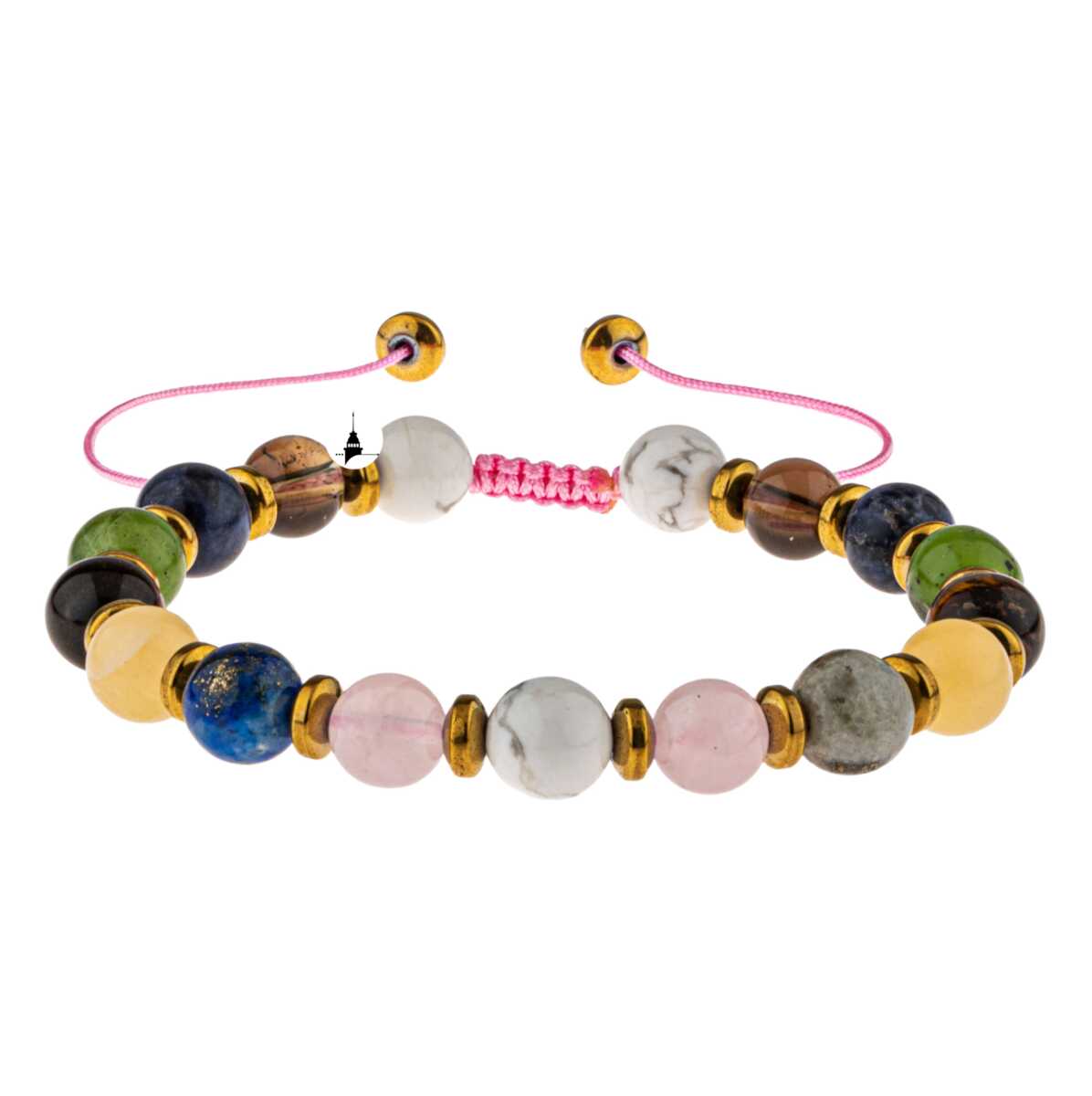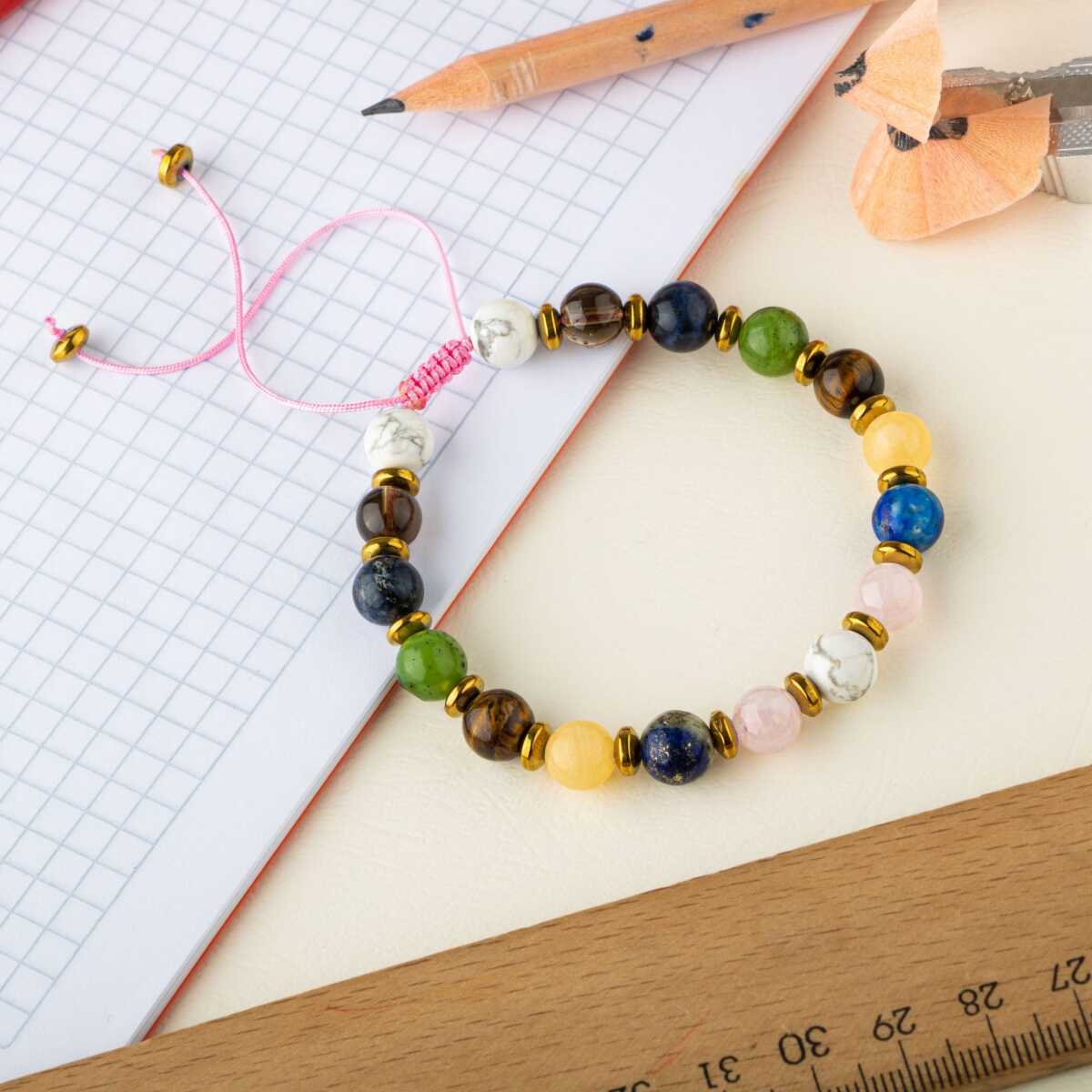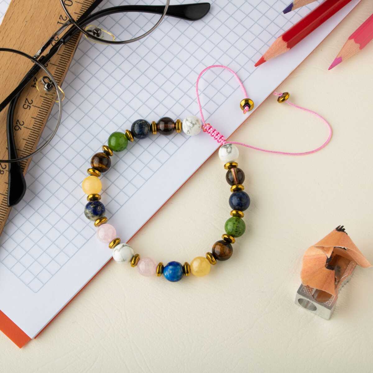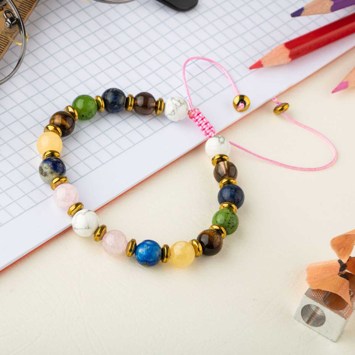 Kız Öğrenci Doğal Taş Bileklik-Havlit-Pembe Kuvars-Labradorit-Lapis Lazuli-Kalsit-Yeşim-Dumanlı Kuvars-Sodalit-Kaplan Gözü