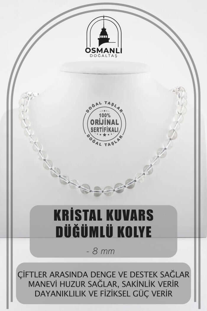 Kristal Kuvars 8 mm Düğümlü Doğal Taş Kolye