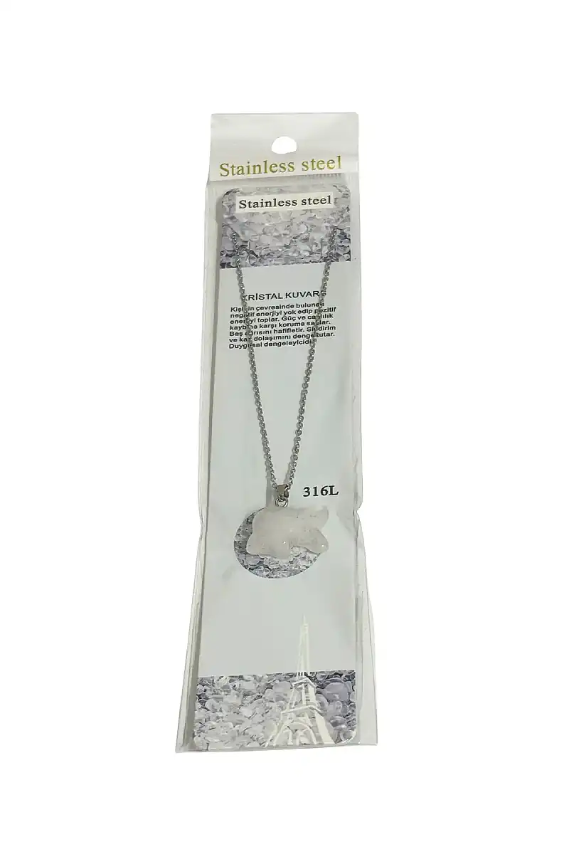 Kristal Kuvars Fil Figür Taşlı Çelik Zincir Doğal Taş Kolye