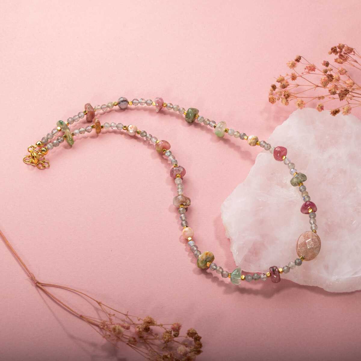 TÜM TAŞLARIMIZ SERTİFİKALI ve %100 ORJİNAL GERÇEK DOĞAL TAŞTIR. Doğal taş takılarının bu eşsiz güzelliği ve faydalarıyla müşterilerimize en kaliteli ve en özel takıları sunuyoruz. Her bir takı, tasarımcılarımız tarafından özenle hazırlanmış, doğal taşların renkleri ve enerjileri ile birlikte, size en uygun olanı seçmenizi sağlar. Doğal taş takılarımız, herhangi bir moda stiline mükemmel bir şekilde uyum sağlar. Aynı zamanda doğanın eşsiz güzelliklerini keşfetmek isteyenler için de harika bir seçenek sunarlar. Kendinizi özel hissetmek istediğinizde, doğal taş takılarımız sizin için mükemmel bir seçenek olacaktır. Ürün İçeriğindeki Taşlar Aşağıda Listelenmiştir. Labradorit Taşı ÖzellikleriZindelik ve sağlığı destekler. Kaygı bozukluğunu düzenler. Solunum yolu ve akciğerleri kuvvetlendirir. İlham ve bilinci destekler. Renkli Turmalin Taşı ÖzellikleriUyku sorunlarını giderir. Çevreyi ve kendimizi tanımamızı sağlar. Sabrı artırır. Omurga sağlığını destekler. Merhameti yükseltir. Güneş Taşı ÖzellikleriHayırseverliği ve erdemli olmayı aşılar. Hayattan zevk almayı ve keyif almayı artırır. Liderlik ruhunu ve kabiliyetini destekler. Pembe Opal Taşı ÖzellikleriSadakati artırır. İfade etme becerisini yükseltir. Spontane gelişimleri açar. Duyguları yoğunlaştırır, engelleri kaldırır. --------------- BİLGİ: Doğal taşların faydaları günümüzde birçok kullanıcıdan alınan geri dönüşlerde defeatle gözlemlenmiştir. Kan dolaşımına ve sindirim sistemine bir ilaç gibi dahil edilememesi; enerjileri ve kullanımı açısından sunacağı faydaya inanma ön koşulu gerektirmesiyle kesinlikle bir ilaç mahiyetinde değildir. Fakat geçmişten günümüze Biruni ve İbn-i Sina gibi büyük tıp alimleri doğal taşlar üzerinde düşünmüş, araştırmış ve geliştirdikleri tedavi yöntemlerine dahil etmişlerdir.Doğal taşların faydaları bilimsel bir deney-gözlem sürecinden ziyade geçmişte yaşayan toplumların ve tıp alimlerinin kullanım amaçlarına istinaden belirlenmekte, tespit edilmektedir. Bil biliyoruz ki şifa sadece Allah’tandır. Nereden ve nasıl geleceği belli olmaz. KAYNAK: Osmanlı Doğaltaş taşların özellikleri ve kullanım bilgileri için aşağıdaki kaynaklardan faydalanmaktadır.Walter Schumann, Gemstones Of The World (Sterling Yayın Evi, 17. Baskı).Judy Hall, Değerli Taşlar Kitabı (Alfa Basım Yayın, 3. Basım, 2021)Muhammed Bin Mahmud-ı Şirvani, Tuhfe-i Muradi. Hazırlayan: Mustafa Argunşah (Türk Dil Kurumu, 1999)Patrick Voillot, Elmaslar ve Değerli Taşlar (Yapı Kredi Yayınları, 1. Baskı, 2013)