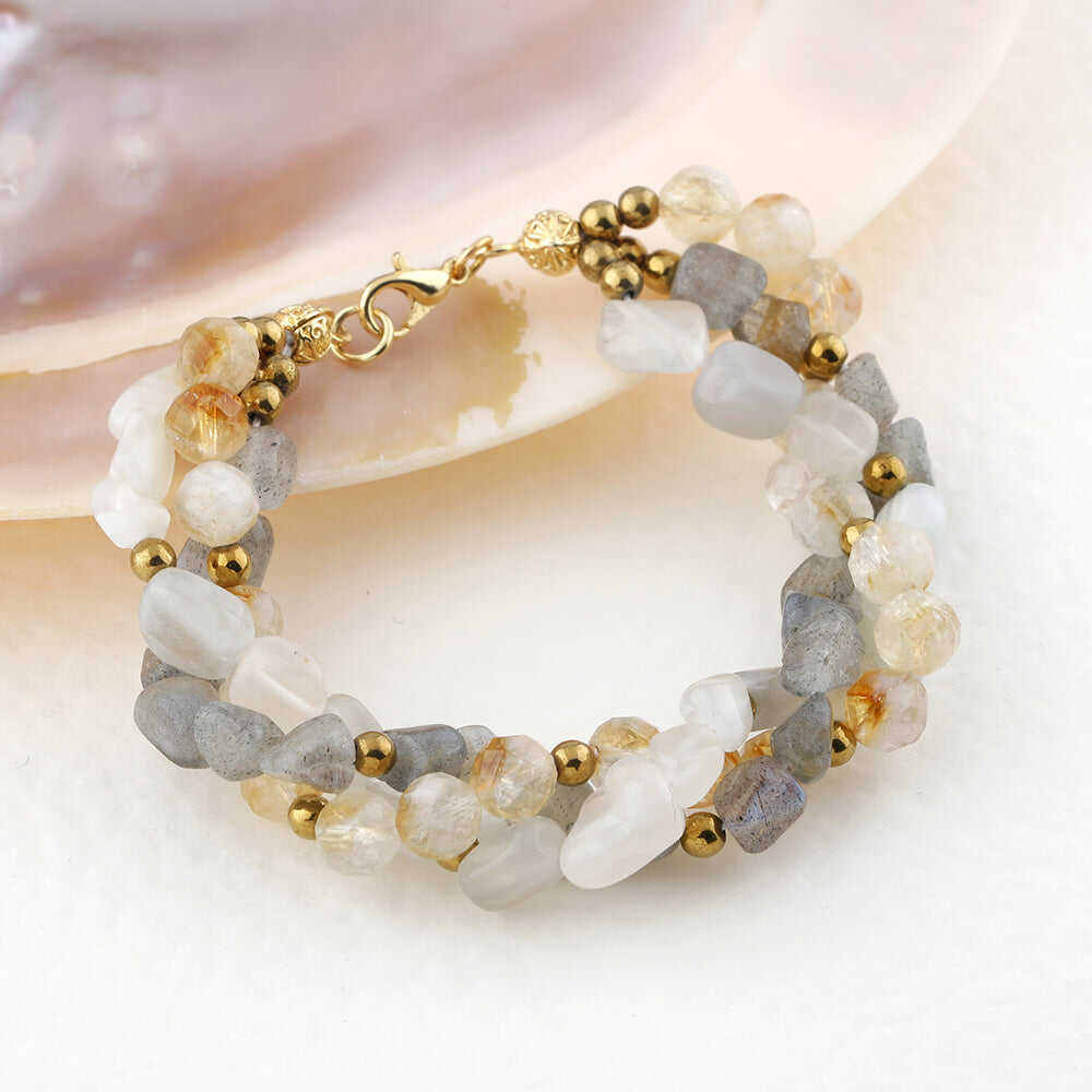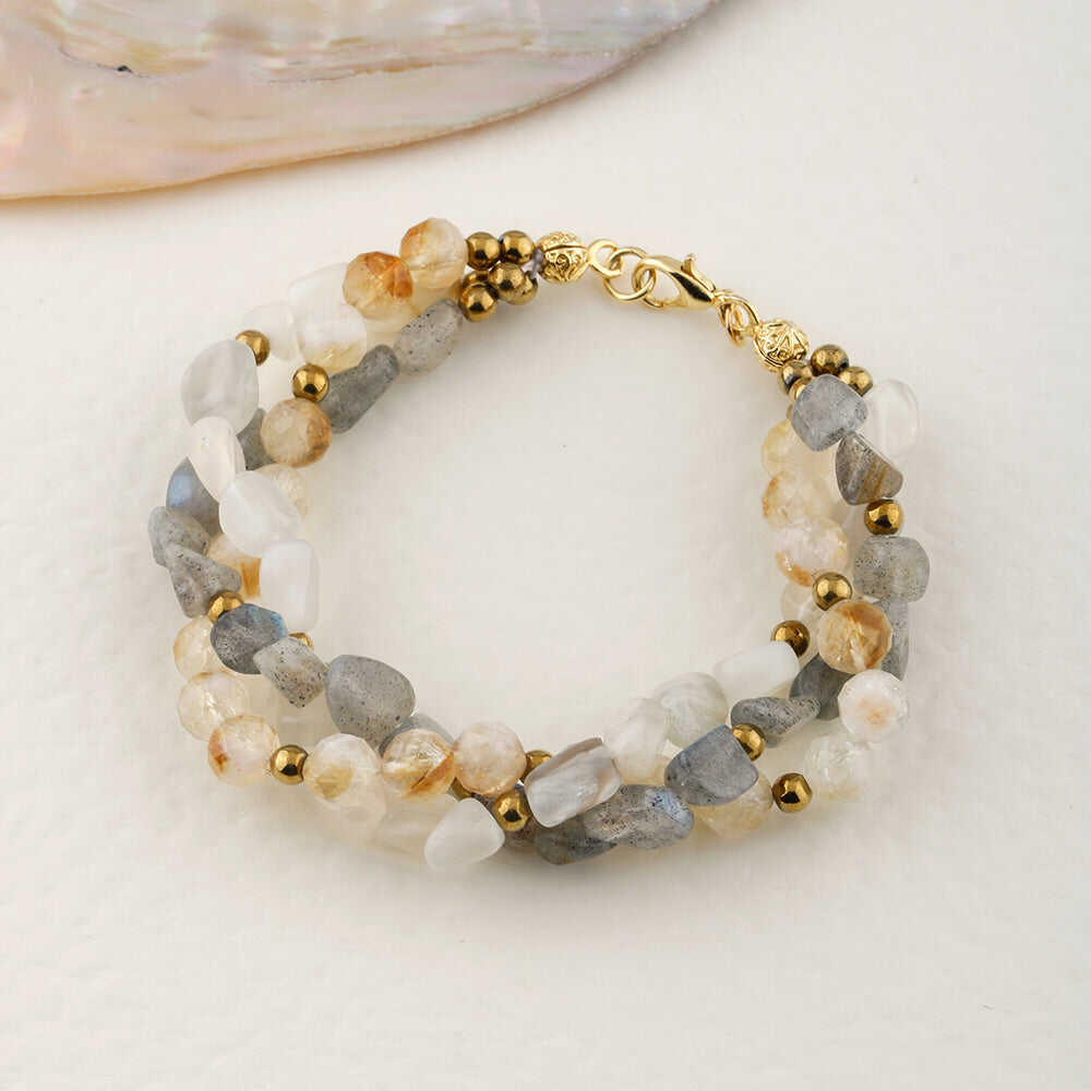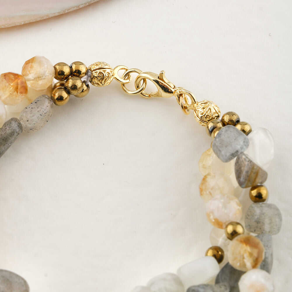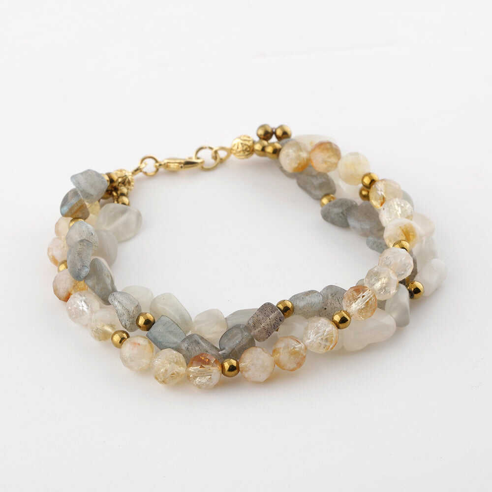 Labradorit-Sitrin-Ay Taşı Altın Kaplama Kapama Doğal Taş Bileklik