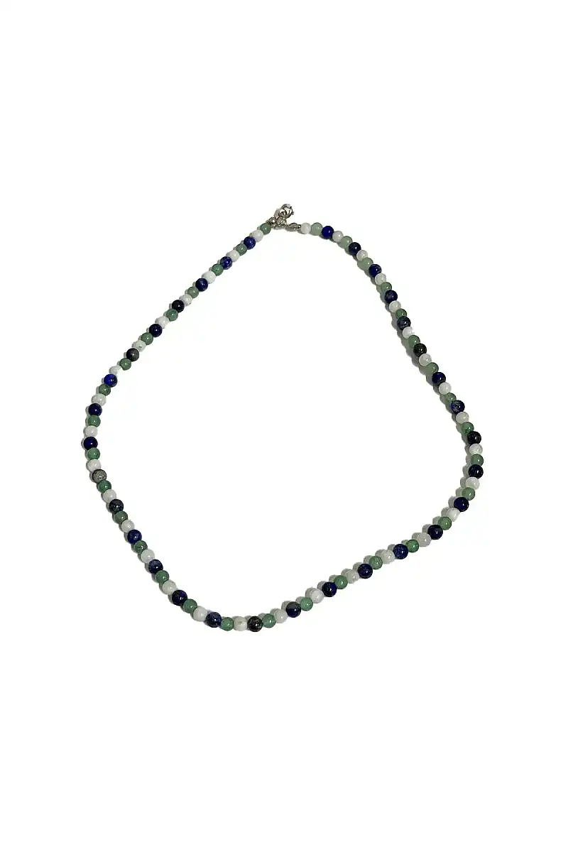 Lapis Lazuli Ay Taşı Aventurin Kolye 4 mm Gümüş Kapama Doğal Taş Kolye