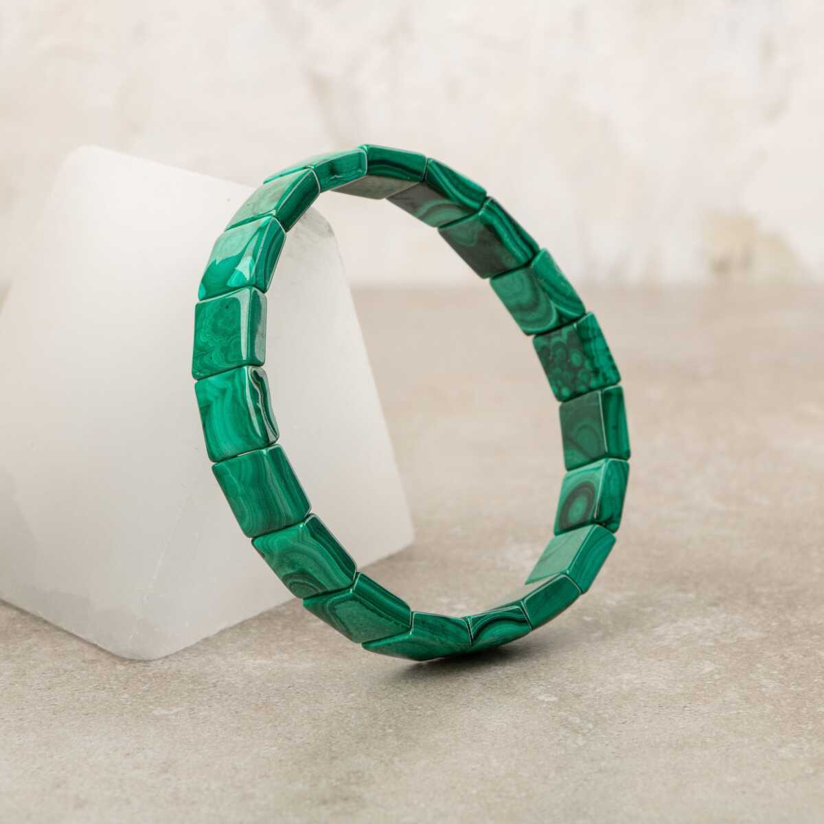 Malakit Doğal Taş Kare Kesim Geniş Kesim Bileklik