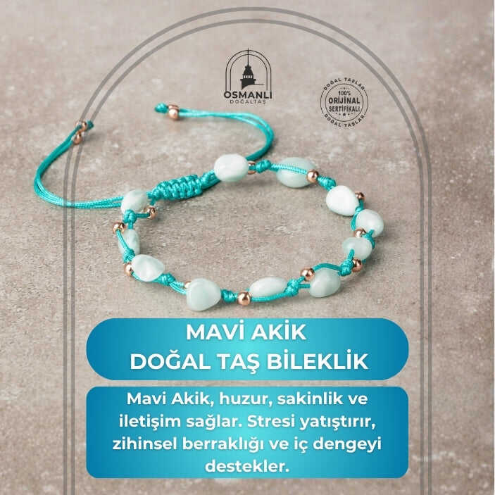 Mavi Akik Natürel Kesim Doğal Taş Makrome Bileklik