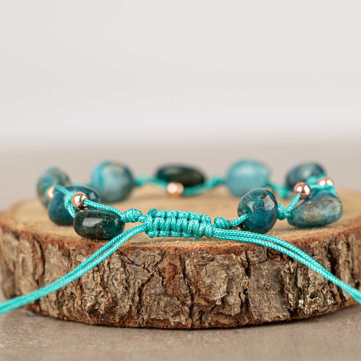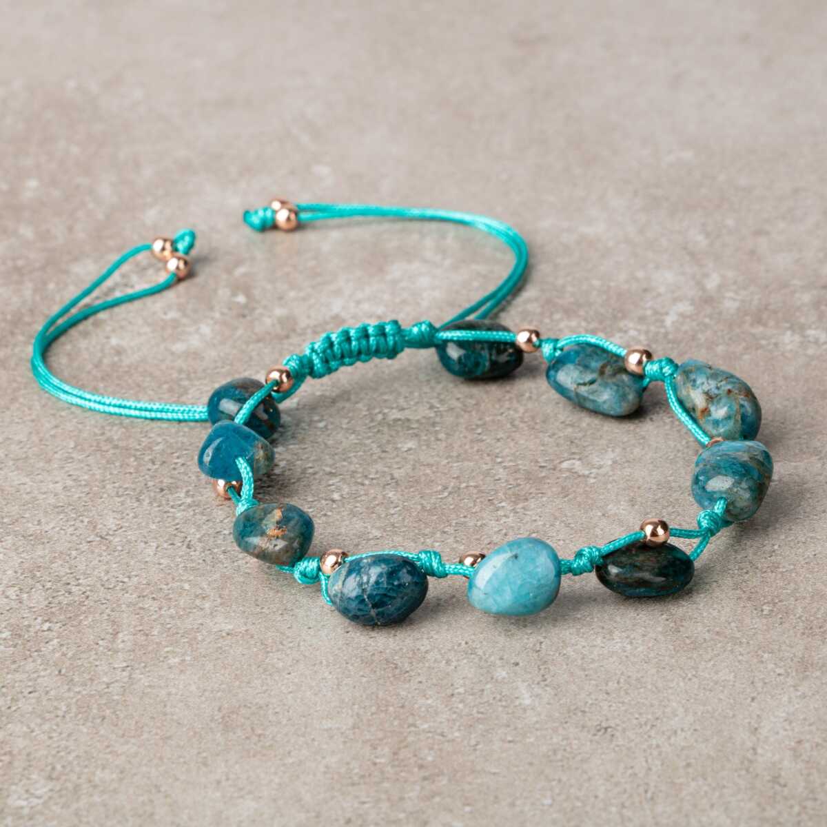 Mavi Apatit Natürel Kesim Doğal Taş Makrome Bileklik