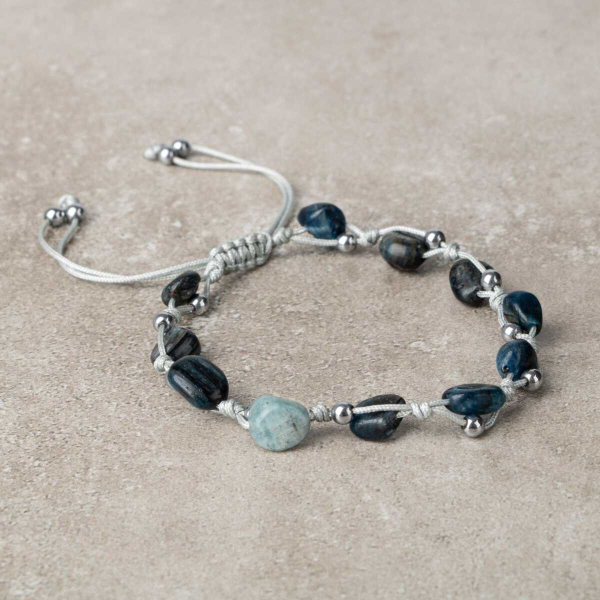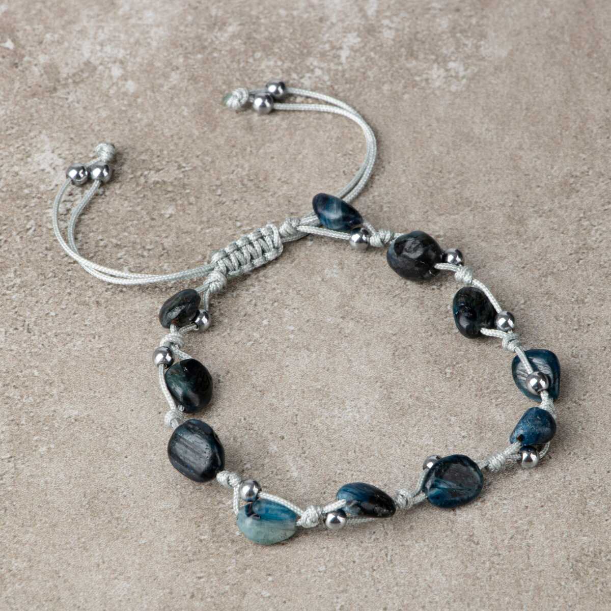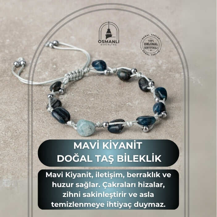 Mavi Kiyanit Natürel Kesim Doğal Taş Makrome Bileklik