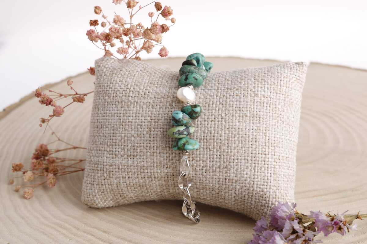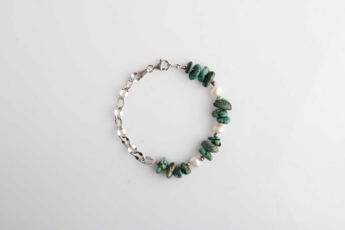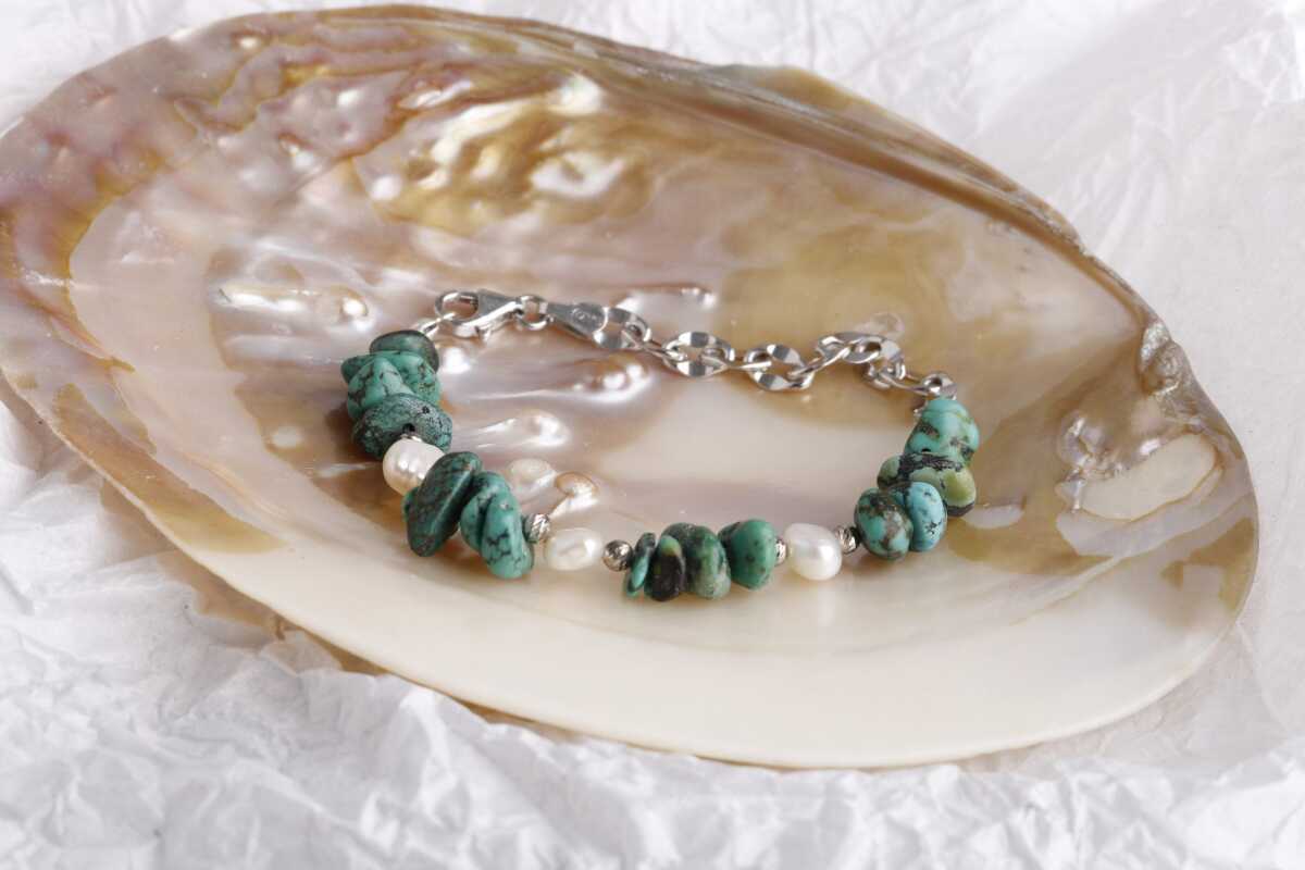 Mia, Turkuaz Firuze-İnci Doğal Taş Charm Bileklik