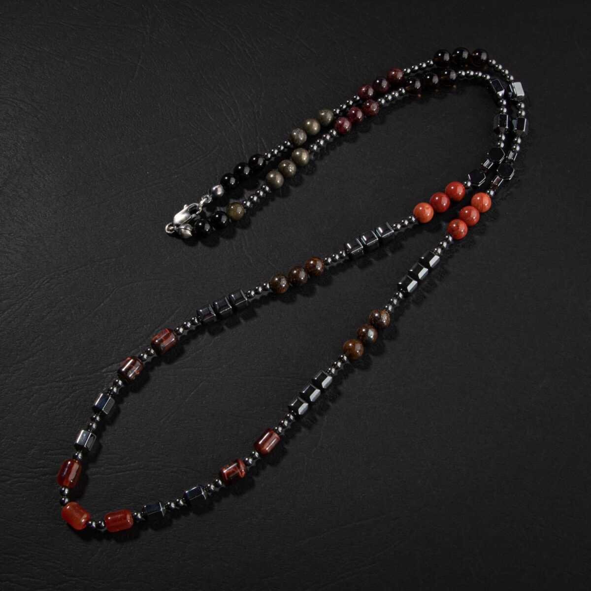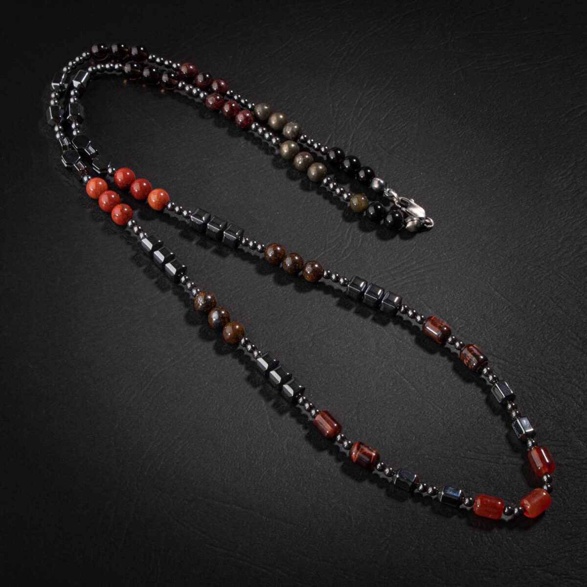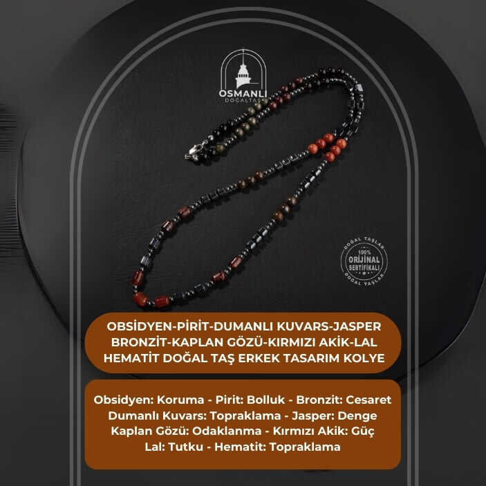 Obsidyen-Pirit-Dumanlı Kuvars-Jasper-Bronzit-Kaplan Gözü-Kırmızı Akik-Lal Taşı-Hematit Doğal Taş Erkek Tasarım Kolye