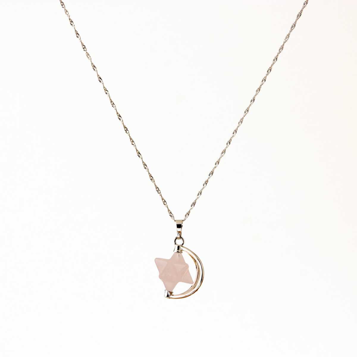 Pembe Kuvars Doğal Taş Yıldızlı Kolye, Gümüş Zincir