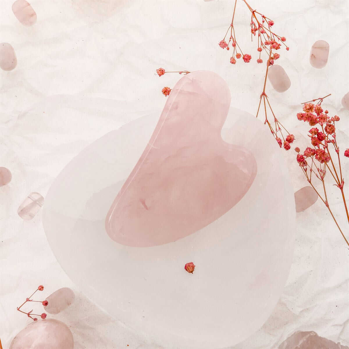 Pembe Kuvars Taşı Gua Sha Yüz Masaj Taşı Kalpli