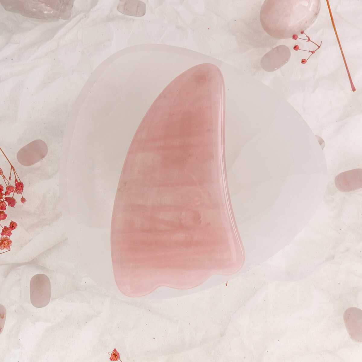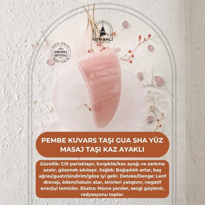 Pembe Kuvars Taşı Gua Sha Yüz Masaj Taşı Kaz Ayaklı