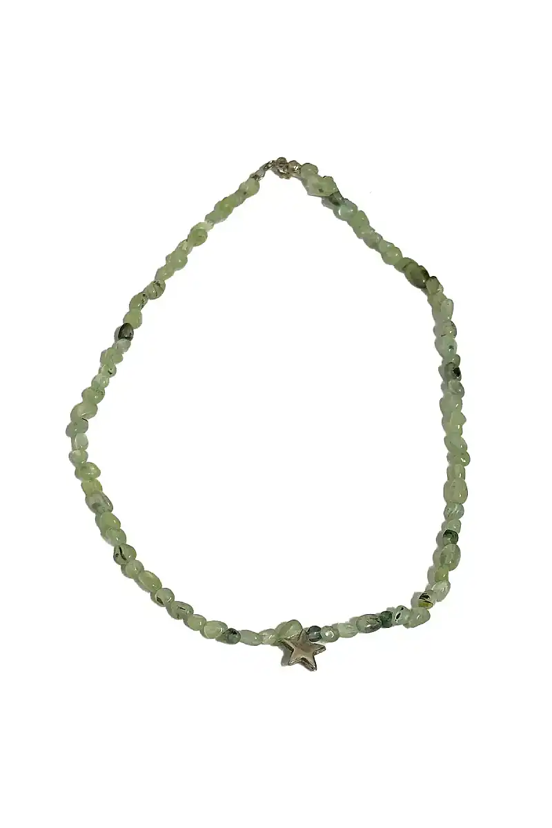 Prehnit Gümüş Yıldız Aparatlı Naturel Kolye Doğal Taş Kolye