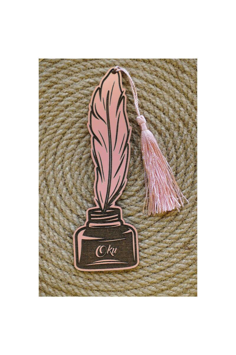 Püsküllü Kitap Ayraç - Divit Desen Oku Pembe