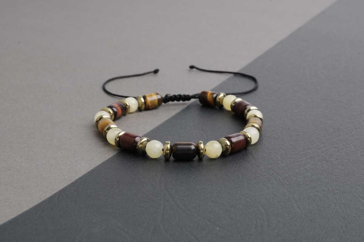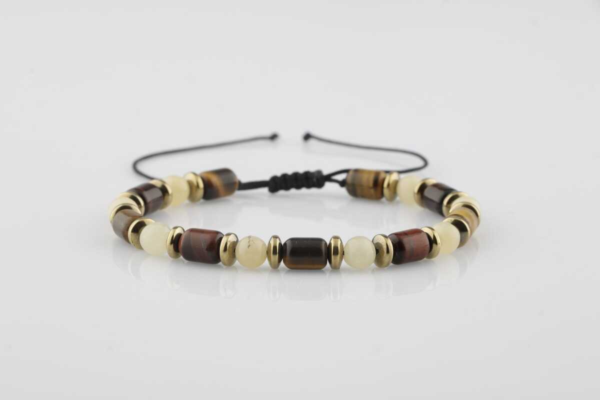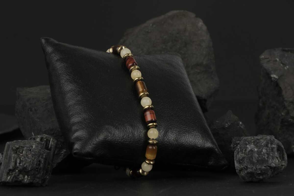 Sahara Kaplan Gözü-Hematit-Kalsit Doğal Taş Erkek Bileklik
