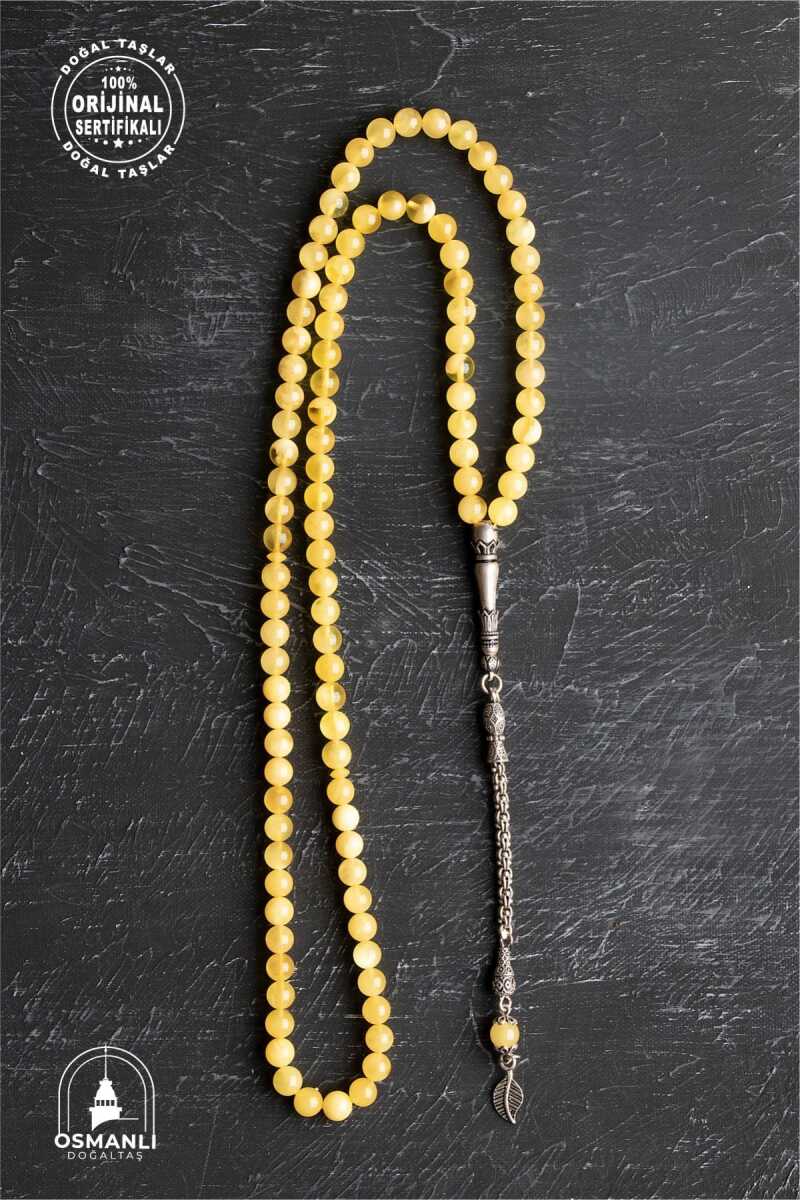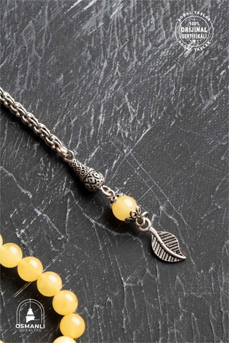 Sertifikalı 99'lu Yaprak Motifli Gümüş Kehribar Tesbih - 6 mm Küre Kesim