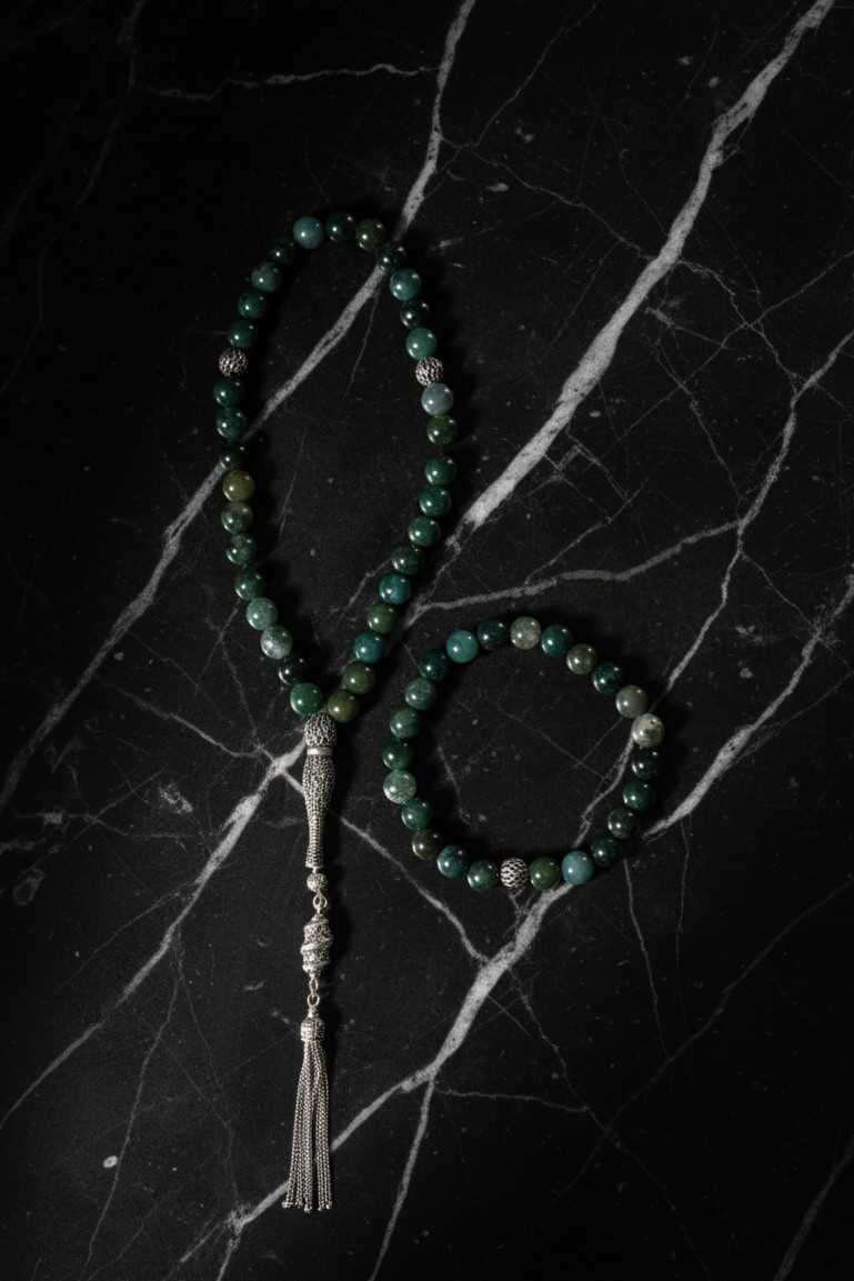 Sertifikalı Akik 925 Ayar Gümüş 8 mm İmameli Tesbih & Bileklik Seti Tarih boyunca güçlü bir koruyucu olarak bilinen, denge ve topraklanma taşı Akik (Agate) ile tanışın. Zarif 925 Ayar Gümüş detaylarıyla tamamlanan Sertifikalı Akik Tesbih & Bileklik Seti, hem asil bir aksesuar hem de ruhsal dengeyi ve dayanıklılığı sağlayan özel bir obje olarak hayatınıza değer katacak. Akik Taşının Büyüleyici Faydaları Güçlü Koruma ve Topraklanma: Akik, nazara ve negatif enerjilere karşı güçlü bir koruma kalkanı oluşturur. Duygusal, fiziksel ve zihinsel dengeyi sağlamaya yardımcı olarak topraklanmayı destekler. Huzur ve Sakinlik: Stresi azaltır, içsel sakinlik ve huzur duygusunu artırır. Yoğun ve baskı altında hissedilen anlarda dengeleyici bir etki sunar. Kararlılık ve Özgüven: Pratik düşünme yeteneğini ve analitik becerileri geliştirir. Kararlılığı ve kendine güveni teşvik eder. Enerji Dengeleme: Vücuttaki negatif enerjileri nötralize ederek pozitif bir akış sağlar. Bu özel set, orijinalliği ve kalitesi onaylanmış gerçek Akik taşı kullanılarak üretilmiştir. Canlı renkleri ve doğal desenleriyle her bir taş eşsiz bir karaktere sahiptir. Her bir parça, ustalıkla işlenmiş 925 ayar gümüş imame ve detaylarla zenginleştirilmiştir. Akik'in doğal enerjilerinden gün boyu faydalanırken, asil görünümüyle de stilinizi tamamlayın. Şimdi sipariş verin ve Sertifikalı Akik 925 Ayar Gümüş Tesbih & Bileklik Seti ile hem ruhunuzu hem de stilinizi güçlendirmeye başlayın.