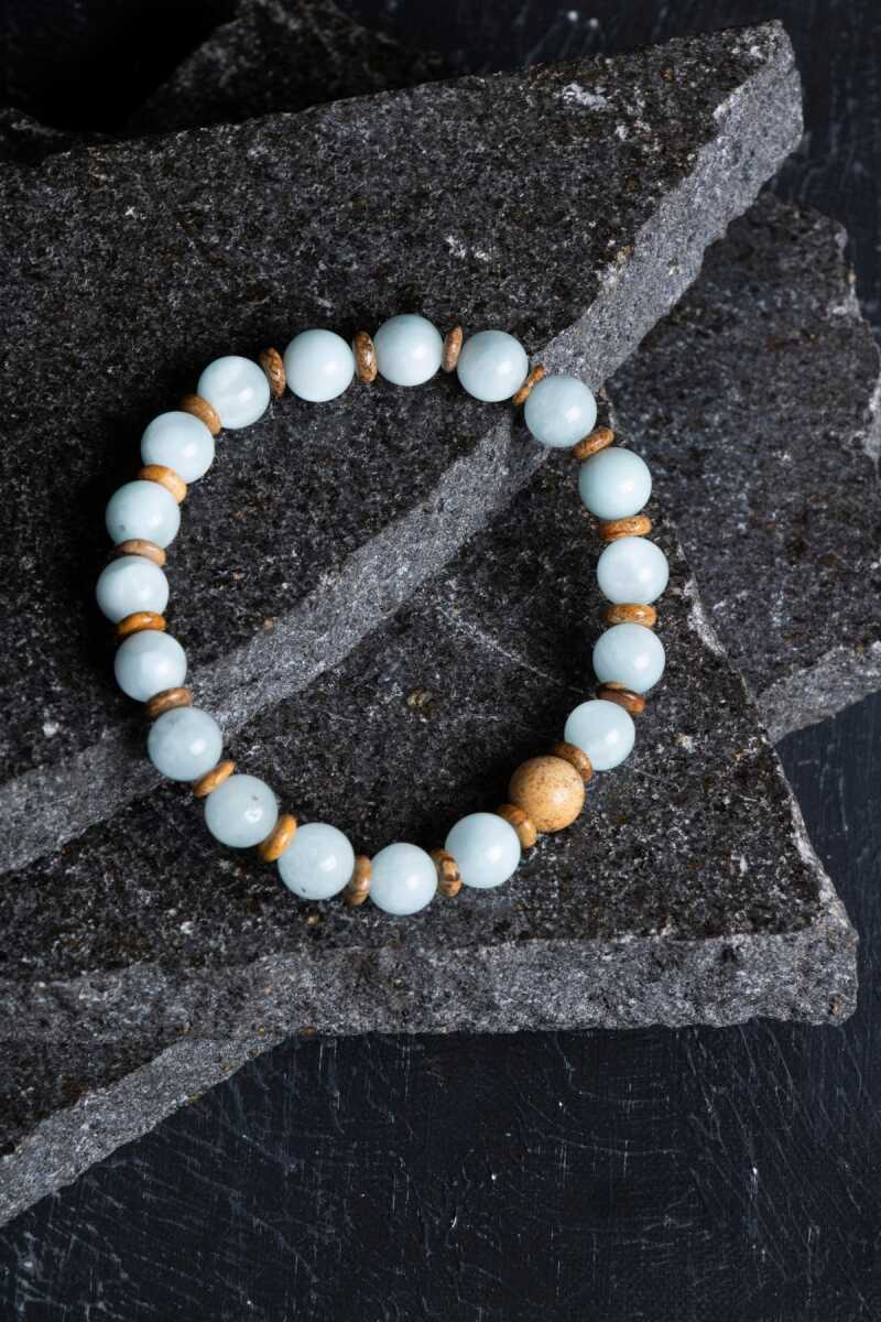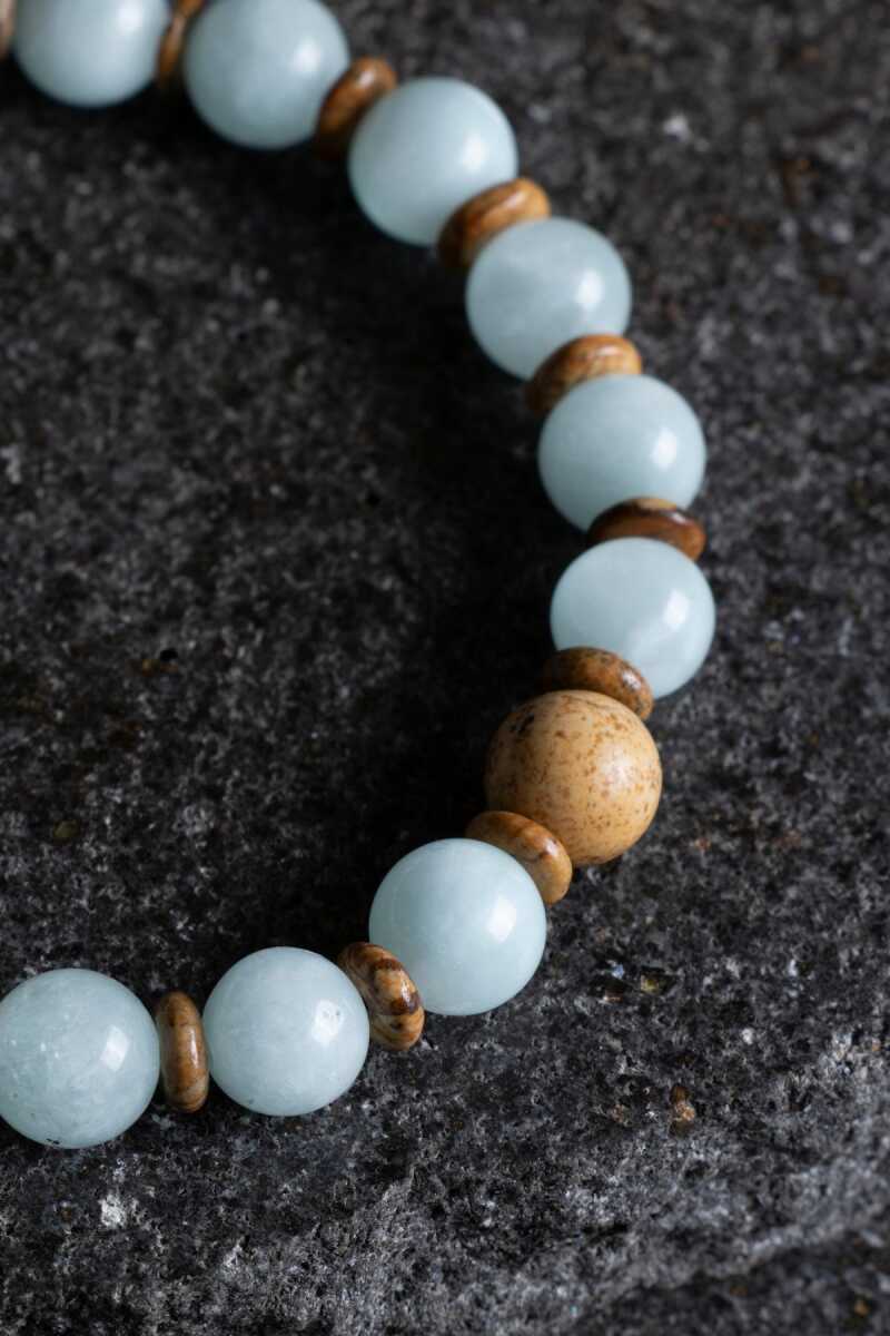 Akuamarin ve Odun Jasper Doğal Taş Bileklik Denizlerin ferahlığını, toprağın kadim bilgeliğiyle birleştirin! Gökyüzü ve denizin huzurunu taşıyan Akuamarin ile milyonlarca yıl öncesinden bugüne ulaşan ağaç fosillerinin enerjisini barındıran Odun Jasper, bu eşsiz bileklikte buluştu. Bu tasarım; zihninizi dinginleştiren bir esinti sağlarken, aynı zamanda kendinizi dünyada güvende ve sağlam hissetmenize yardımcı olacak bir enerji köprüsü kurar. Bu Özel İkilinin Şifalı Enerjisi Akuamarin (Sükunet ve Netlik): "Sakinlik Taşı" olarak bilinir. Zihinsel gürültüyü dindirir, stresi yatıştırır ve kendinizi daha açık, dürüst bir şekilde ifade etmenize yardımcı olur. Ruhsal bir ferahlık sağlayarak tıpkı dingin bir deniz gibi iç huzuru artırır. Odun Jasper (Kökleşme ve Sabır): Fosilleşmiş ağaç dokusuyla doğanın en güçlü topraklama taşlarından biridir. Geçmişin bilgeliğini taşır, sabrı artırır ve hayatın karmaşası içinde sarsılmaz bir içsel güç ve istikrar sağlar. Tasarım ve Malzeme Özellikleri %100 Gerçek Doğal Taşlar: Birinci sınıf kalitede, doğal dokusu korunmuş Akuamarin ve karakteristik desenleriyle öne çıkan Odun Jasper taşları kullanılmıştır. Doğal Renk Kontrastı: Akuamarin’in şeffaf ve uçuk mavi tonları ile Odun Jasper’ın kahve, krem ve toprak tonlarındaki ahşapsı desenleri, doğanın tüm katmanlarını bileğinize taşır. Her Tarza Uygun: Hem maskülen hem de feminen bir enerjiye sahip olan bu minimalist tasarım, saatlerle mükemmel kombinlenir veya tek başına güçlü bir duruş sergiler. Konforlu Kullanım: (Modelinize göre belirtiniz: Yüksek kaliteli elastik misina sayesinde her bileğe kolayca uyum sağlar veya Dayanıklı makrome örgüsüyle ayarlanabilir formdadır.) Neden Bu Bilekliği Seçmelisiniz? Zihin ve Beden Uyumu: Akuamarin üst ları (boğaz) sakinleştirirken, Odun Jasper alt ları (kök) destekler; bu da size tam bir enerjisel denge sağlar. Stres Yönetimi: Günün yoğun temposunda kendinizi bir sahil kasabasında veya huzurlu bir ormanda yürüyormuş gibi hissetmenize yardımcı olan bir frekansa sahiptir. Anlamlı Bir Hediye: Sevdiklerinize huzur, sabır ve sarsılmaz bir güç dilemenin en estetik ve doğal yolu.