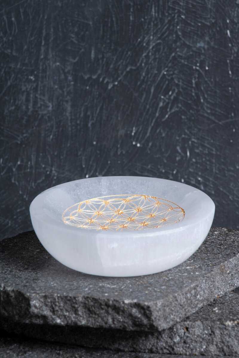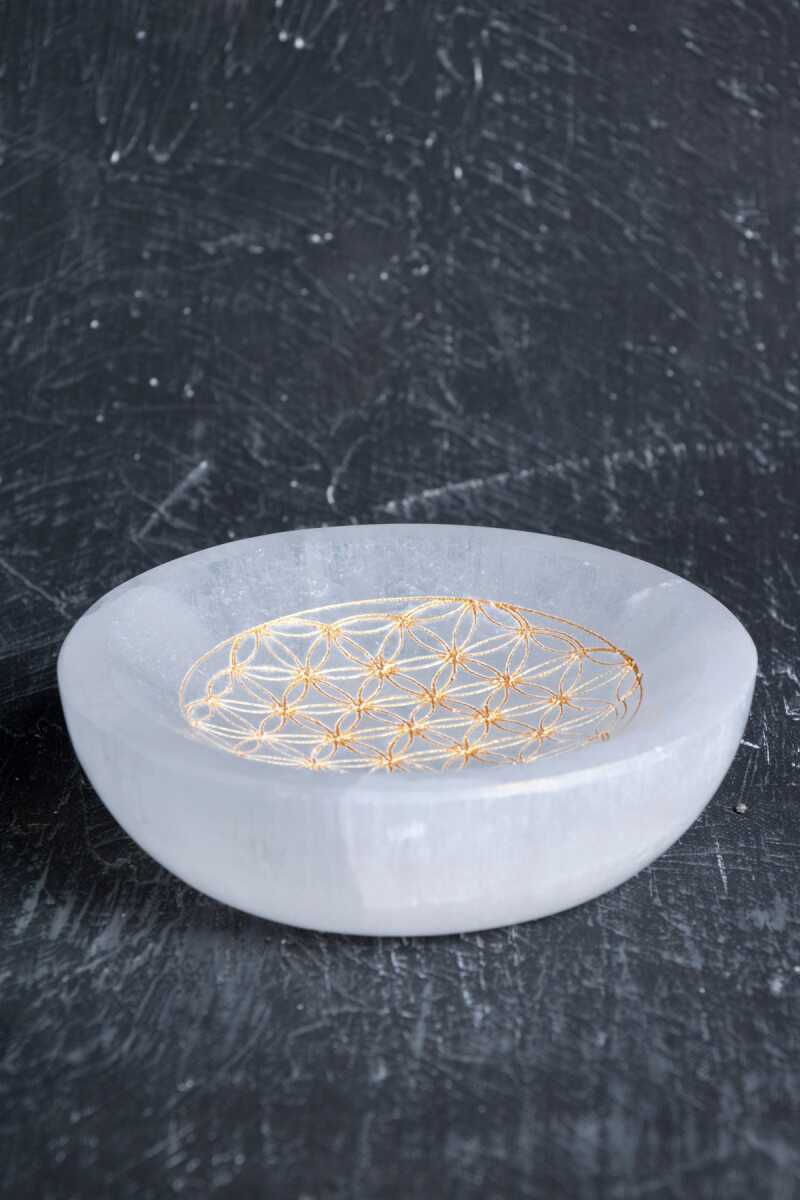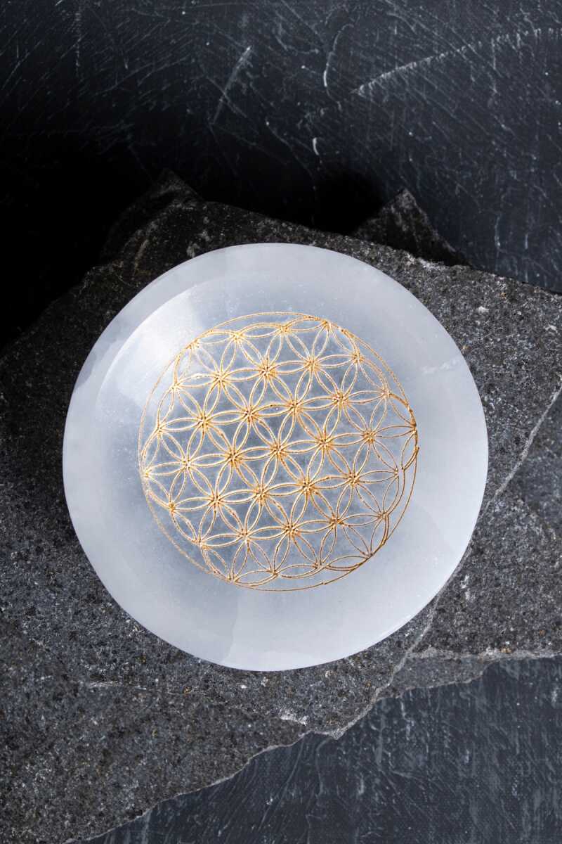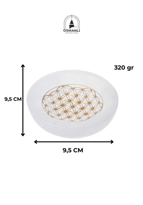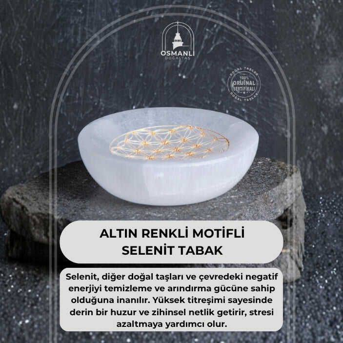 Sertifikalı Altın Renkli Motifli Selenit Tabak