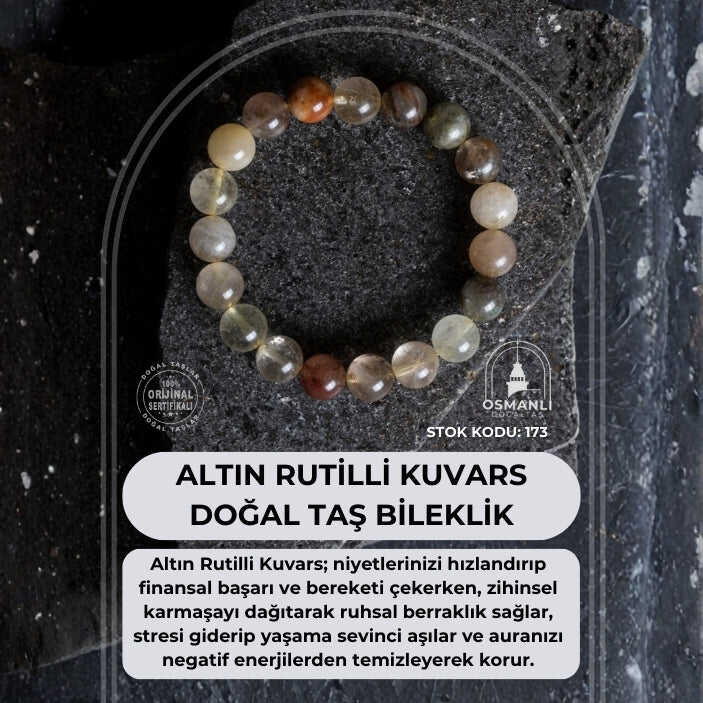 Sertifikalı Altın Rutilli Kuvars Doğal Taş Bileklik (SK:173)