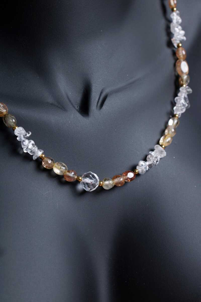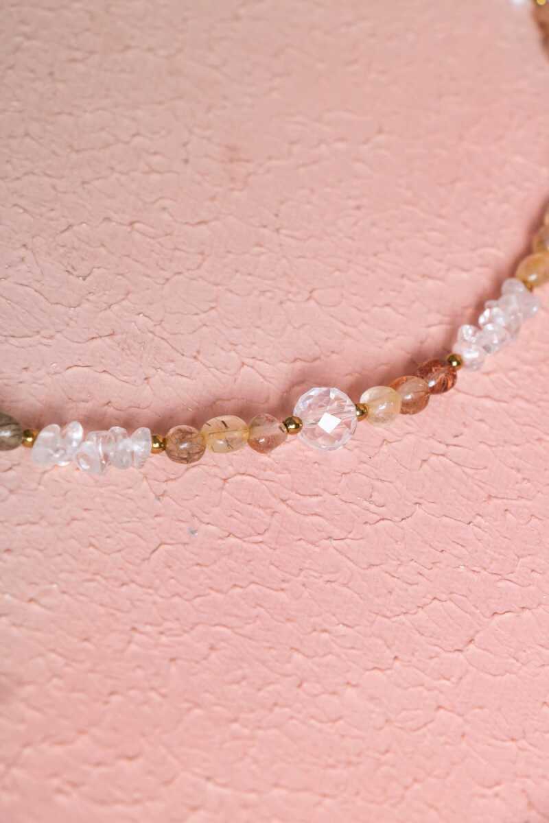 Sertifikalı Altın Rutilli Kuvars, Kuvars, Hematit Doğal Taş Kolye (SK:023)