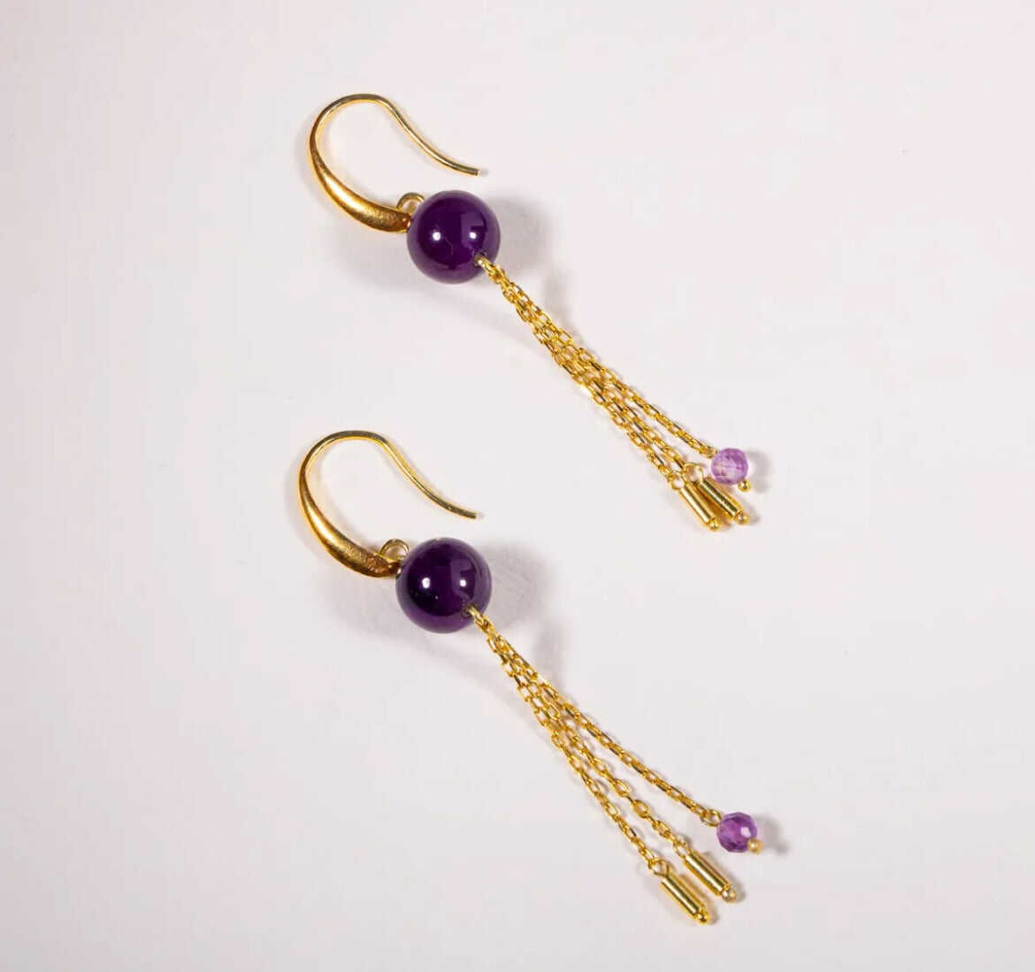 Sertifikalı Ametist Doğal Taşlı 3 Katlı Sallantılı Tasarım Gümüş Küpe