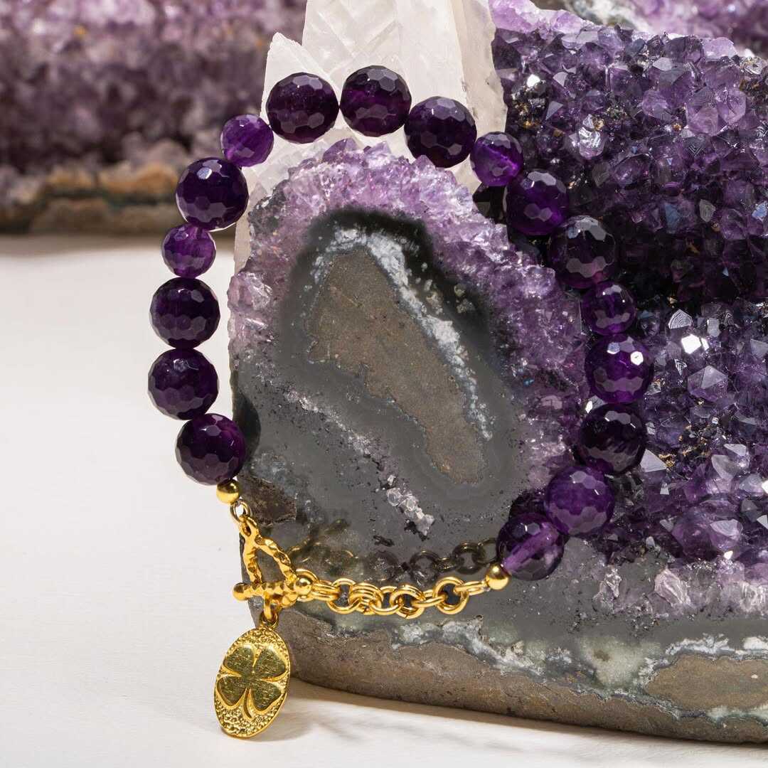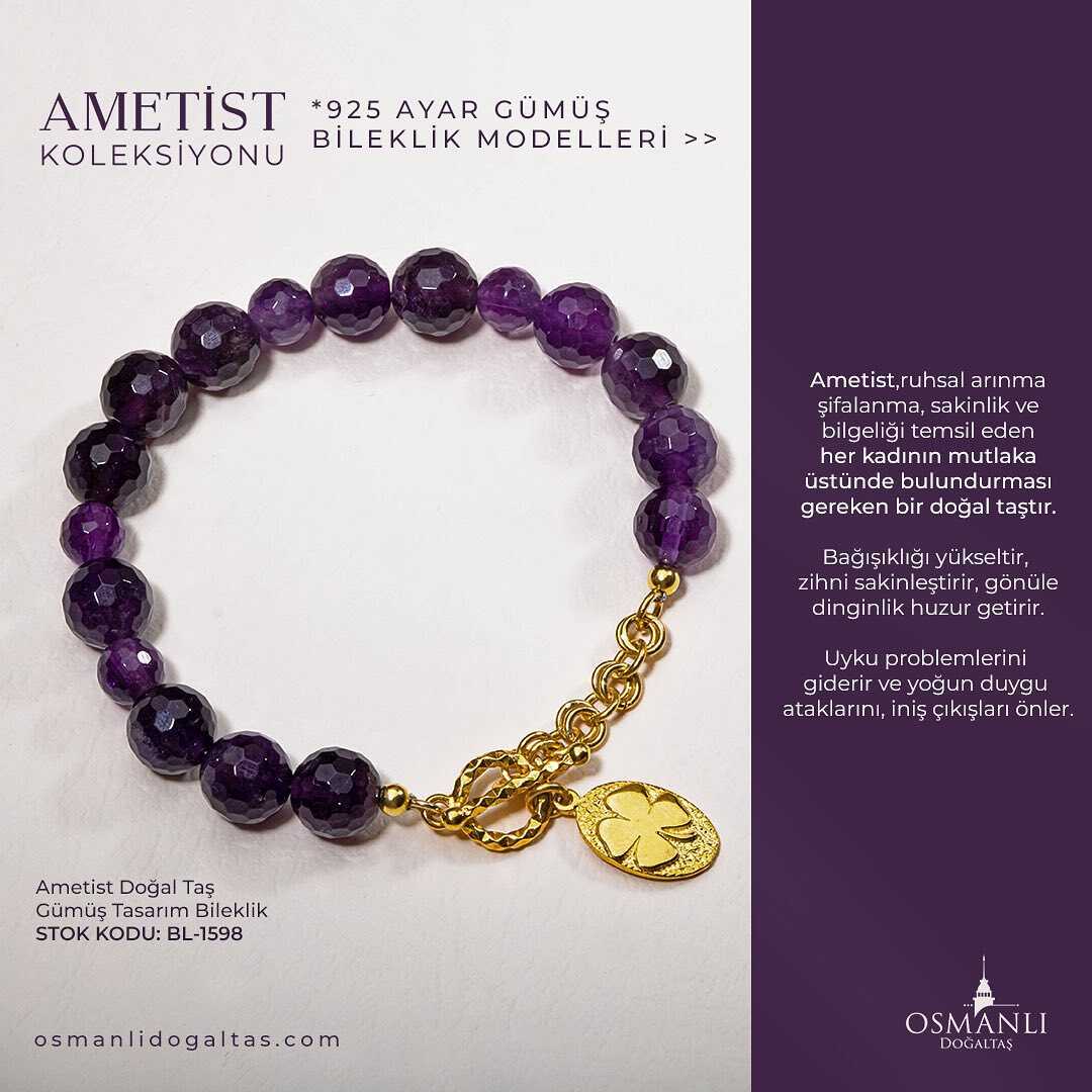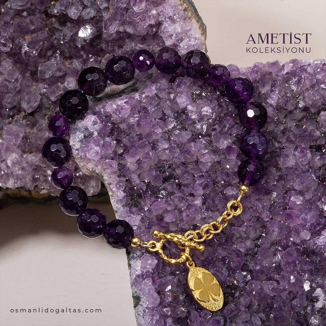 Sertifikalı Ametist Gümüş Aparatlı Doğal Taş Bileklik (SK:342)