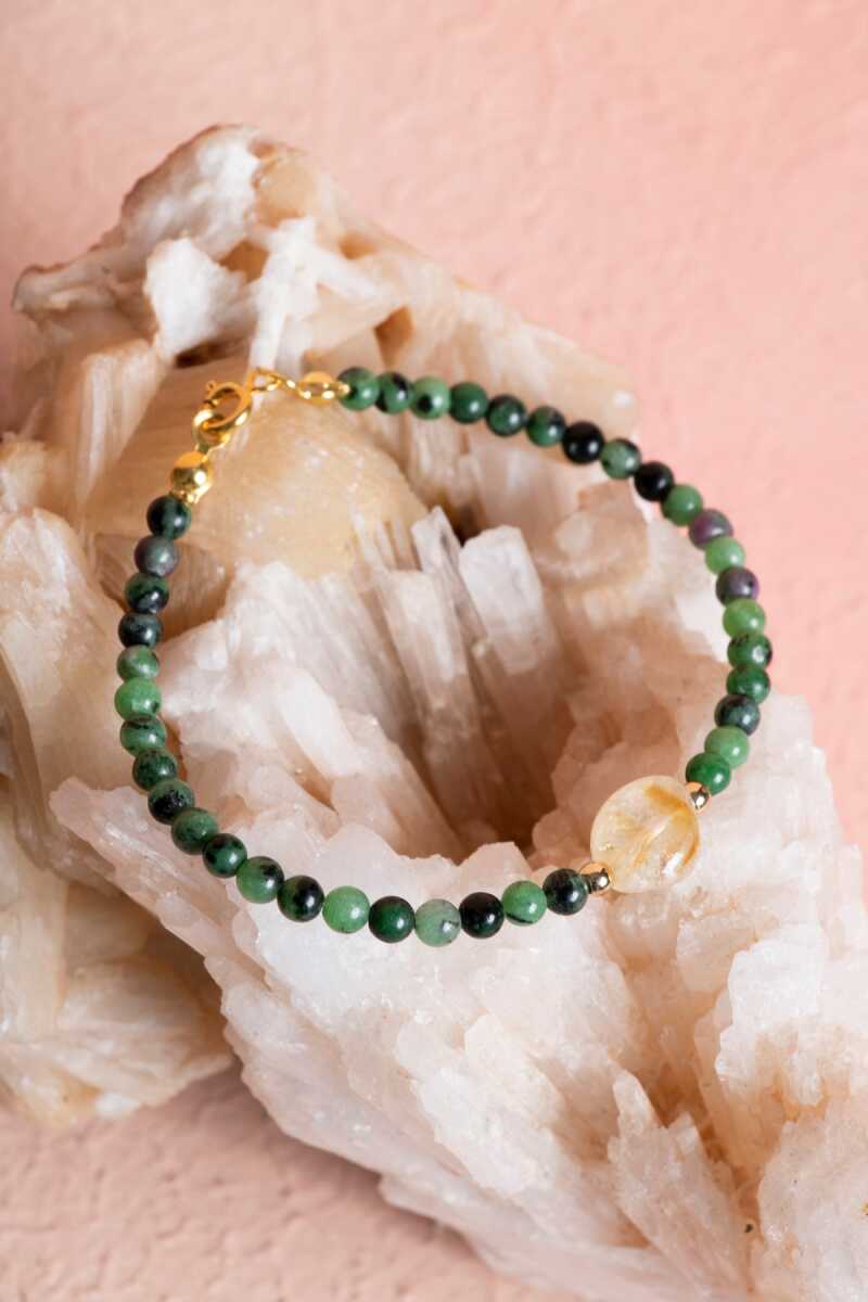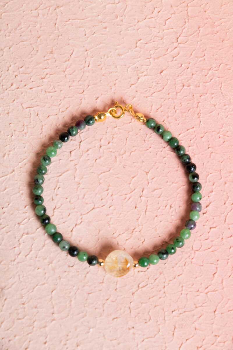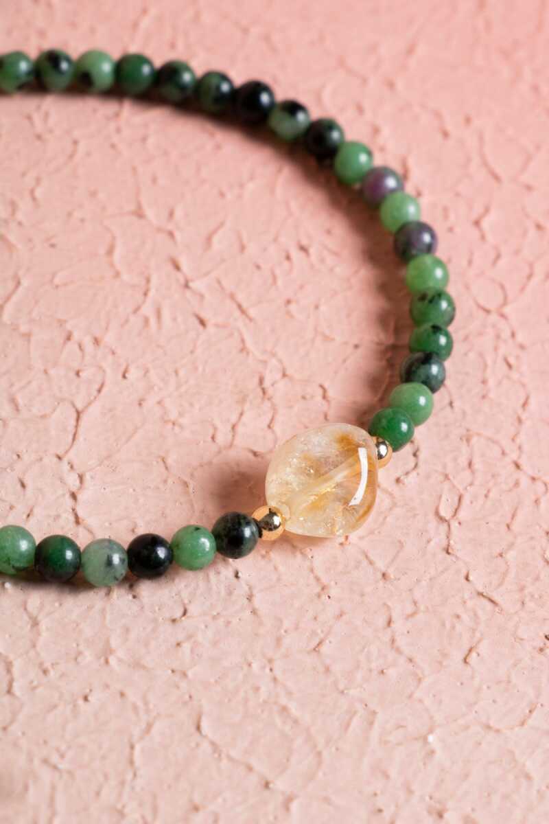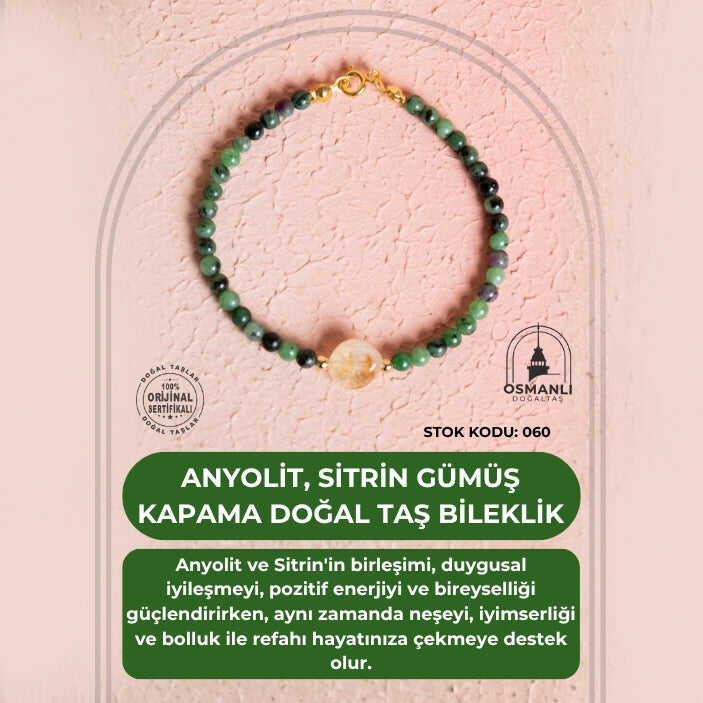 Sertifikalı Anyolit, Sitrin Gümüş Kapama Doğal Taş Bileklik (SK:060)