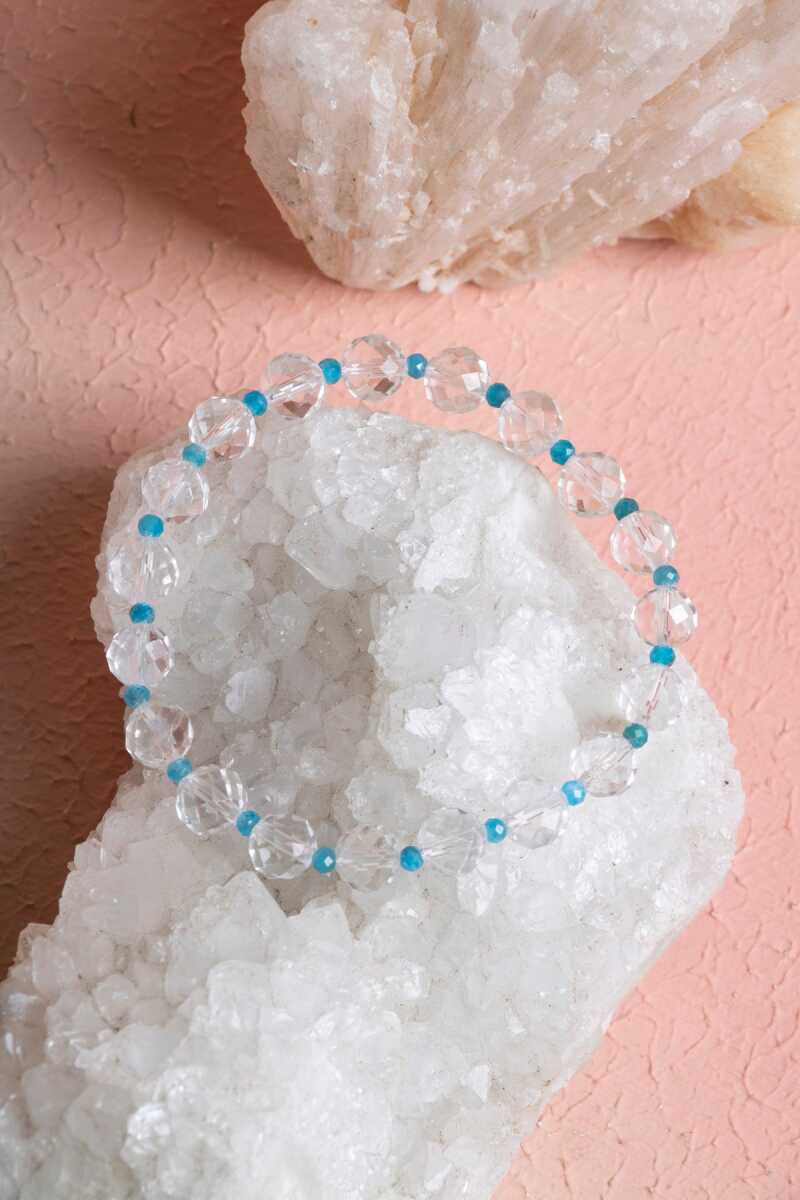 Apatit ve Kristal Kuvars Doğal Taş Bileklik (Misinalı) Zihinsel netlik, ilham ve arınmış bir enerji alanı. Okyanus derinliğini andıran mavi tonlarıyla Apatit ve doğanın en güçlü şifacısı kabul edilen Kristal Kuvars, bu tasarımda birleşiyor. Esnek misinalı yapısıyla kullanım kolaylığı sunan bu bileklik, hem modern görünümüyle göz doldurur hem de zihninizi bir kristal kadar berrak tutmanıza yardımcı olur. Bu İkilinin Enerji Rehberi Apatit (İlham ve Dışa Dönüklük): Bir "motivasyon taşı"dır. Karışık düşünceleri ayıklar, yaratıcılığı artırır ve kişinin kendini ifade etme gücünü pekiştirir. Özellikle öğrenme sürecinde olanlar ve topluluk önünde konuşanlar için destekleyicidir. Kristal Kuvars (Enerji Yükseltici ve Şifacı): "Usta Şifacı" olarak bilinir. Ortamdaki ve diğer taşlardaki negatif enerjiyi emip nötralize ederken, Apatit'in etkisini de katlayarak artırır. Zihne odaklanma ve netlik getirir. Sinerjik Etki: Apatit hedeflerinizi belirlemenize ve ilham almanıza yardımcı olurken, Kristal Kuvars bu vizyonu gerçekleştirmeniz için ihtiyacınız olan yüksek frekanslı enerjiyi sağlar. Tasarım ve Kullanım Özellikleri A Kalite Doğal Taşlar: Apatit'in canlı neon mavisi/yeşili tonları ile Kristal Kuvars'ın şeffaf ve berrak yapısı, bileğinizde ferah bir kontrast oluşturur. Esnek Kristal Misina: Yüksek mukavemetli, şeffaf ve kaliteli lastik misina kullanılmıştır. Takıp çıkarması pratiktir, düğüm gizleme tekniği sayesinde estetik görünür. Hafif ve Zarif: Gün boyu bileğinizde varlığını unutacağınız kadar konforludur. Suya ve günlük kullanıma uygundur. Huzur Veren Stil: Mavi ve şeffaf uyumu, özellikle beyaz, mavi ve gri tonlarındaki kıyafetlerle harika bir enerji uyumu sağlar. Neden Bu Bilekliği Tercih Etmelisiniz? Odaklanma Sorununa Çözüm: Zihninizin çok dağıldığı veya "beyin sisi" yaşadığınız dönemlerde bu iki taşın netleştirici gücünden faydalanabilirsiniz. Enerji Temizliği: Kristal Kuvars sayesinde gün boyunca enerjinizin düşük frekanslara düşmesini engelleyebilirsiniz. Modern ve Minimal: Hem spor hem de şık kombinlerinizde dikkat çekici ancak zarif bir aksesuar olarak kullanabilirsiniz.