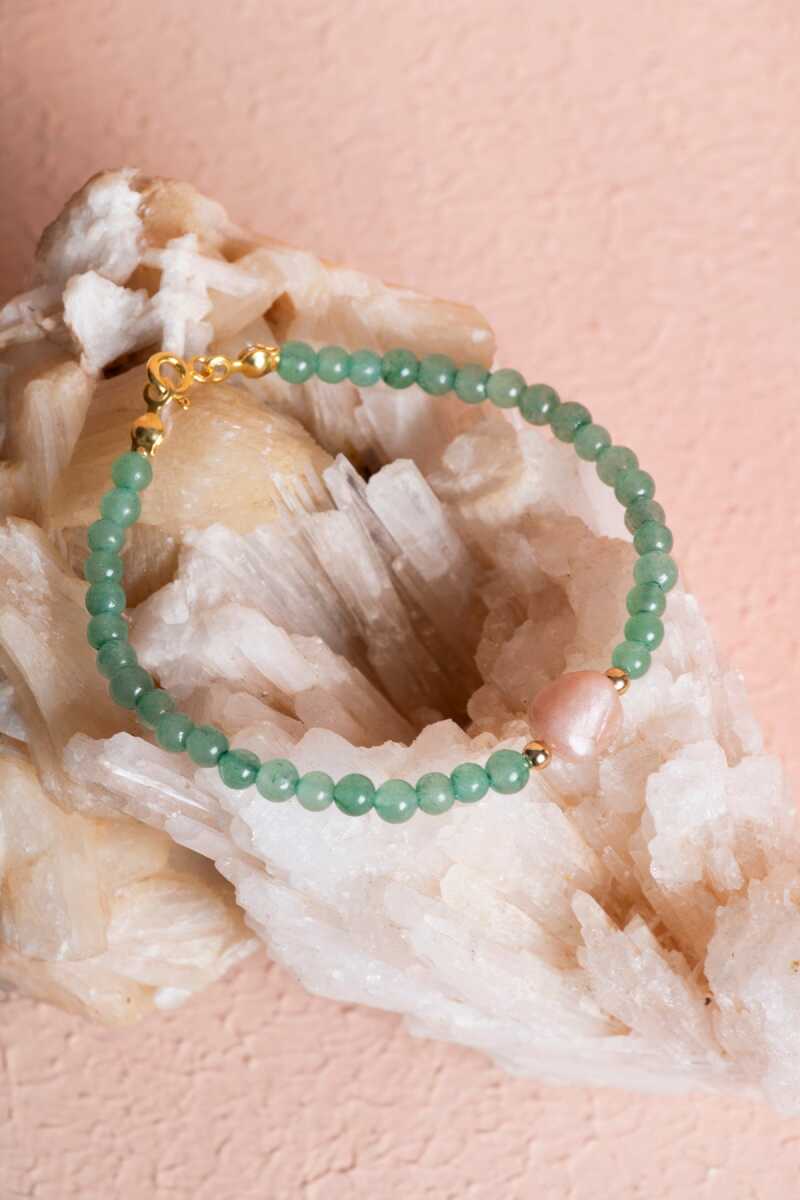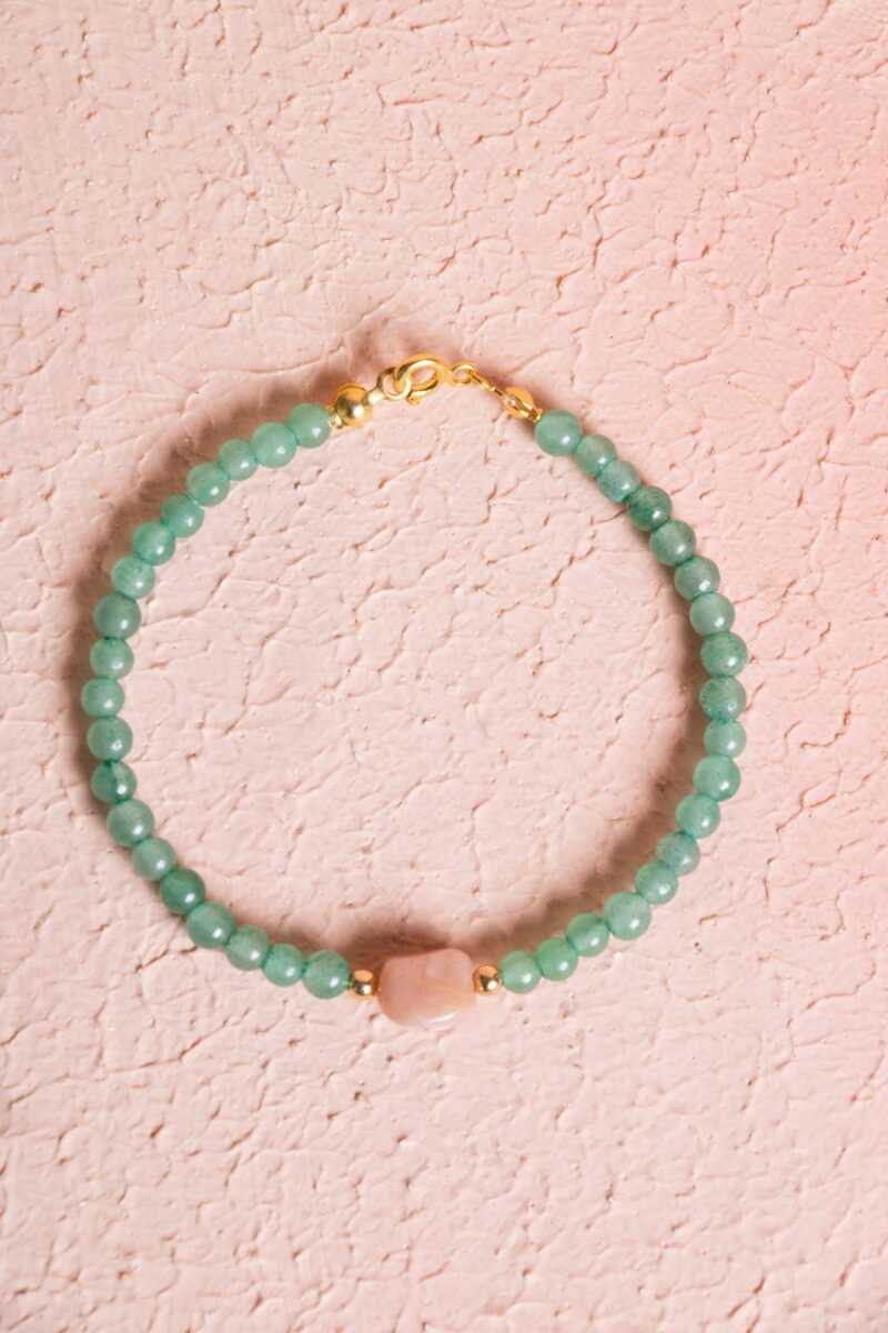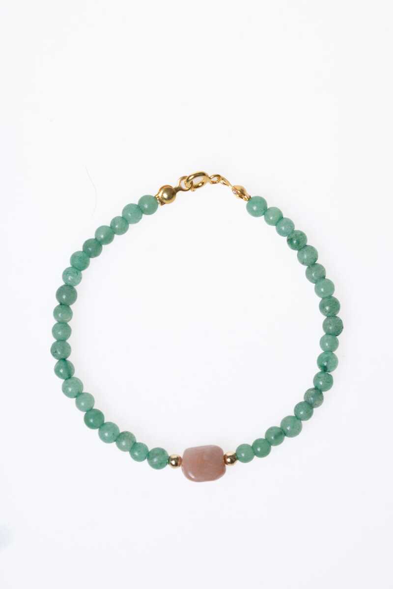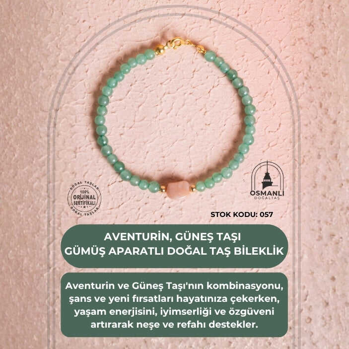 Sertifikalı Aventurin, Güneş Taşı Gümüş Aparatlı Doğal Taş Bileklik (SK:057)