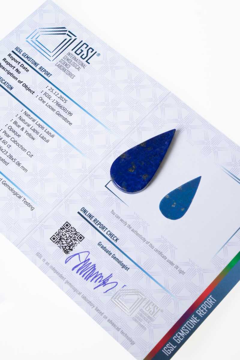 Sertifikalı Damla Lapis Lazuli Doğal Taş Kabaşon Derin lacivert tonu ve altın rengi pirit yansımalarıyla bilinen Sertifikalı Damla Lapis Lazuli Kabaşon, zamansız bir estetik ve güçlü bir karakter sunar. Pürüzsüz yüzeyli kabaşon kesimi, taşın doğal dokusunu ve renk derinliğini en saf haliyle ortaya çıkarır. Koleksiyonluk – Sınırlı adet. Lapis Lazuli Taşının Asil ve Bilge Enerjisi Lapis Lazuli (Bilgelik, İfade ve İçsel Güç):Lapis Lazuli taşı, tarih boyunca bilgelik, sezgisel güç ve doğru ifade ile ilişkilendirilmiştir. Zihinsel berraklığı desteklediğine, içsel farkındalığı artırdığına ve kişinin kendini daha net ifade etmesine yardımcı olduğuna inanılır. Doğal lacivert zemin üzerindeki altın renkli pirit damarları, her kabaşonu benzersiz ve tekrarlanamaz kılar. Damla Form & Kabaşon Kesim Damla form, taşı zarif ve akışkan bir siluetle sunarken; kabaşon kesim, Lapis Lazuli’nin doğal desenlerini bozmadan yumuşak ve parlak bir yüzey sağlar. Bu klasik form; yüzük, kolye, broş ve özel tasarım mücevher çalışmalarında sıklıkla tercih edilir. Sertifikalı ve Özgün Bu kabaşon, orijinalliği ve kalitesi onaylanmış Sertifikalı Doğal Lapis Lazuli Taşı kullanılarak sunulmaktadır. Doğal taş koleksiyoncuları, mücevher tasarımcıları ve kişisel üretimler için değerli ve anlamlı bir seçimdir. Bilgelik, zarafet ve güçlü bir ifade arayanlar için özenle seçilmiştir.