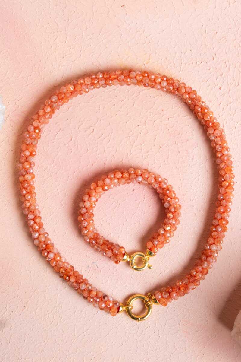 El İşçiliği Örme Güneş Taşı Gümüş Kapama Set (Kolye ve Bileklik) Neşeyi, canlılığı ve güneşin pozitif şans enerjisini hayatınıza davet edin! Güneş Taşı doğal taşının sıcak, ışıltılı enerjisi, usta El İşçiliği Örme tekniğiyle hazırlanmış bu özel Kolye ve Bileklik Seti'nde birleşiyor. Şık ve güvenli Gümüş Kapama detaylarıyla tamamlanan bu set, size sürekli yüksek enerji, iyimserlik ve özgüven sağlayan güçlü bir enerji kaynağıdır. Güneş Taşı'nın Büyüleyici Faydaları ve Enerjisi Neşe ve Pozitif Şans: Güneşin enerjisini temsil eder; ışık ve coşku saçar. Yaşam enerjisini, iyimserliği ve pozitif şansı hayatınıza çekmeye yardımcı olur. Özgüven ve Canlılık: Özgüveni ve kişisel gücü artırır. Harekete geçme isteğini ve motivasyonu yükseltir. Duygusal Denge: Depresif ruh hallerini hafifletmeye yardımcı olur, içsel bir sıcaklık ve dinginlik sağlar. El İşçiliği ve Gümüşün Mükemmel Uyumu Ustalıkla Örülmüş Tasarım: Her bir Güneş Taşı tanesinin özenle birleştirildiği El İşçiliği Örme tekniği, setin enerjisini güçlendirir ve cilde yumuşak, konforlu bir temas sağlar. Gümüş Kapama Güvencesi: Yüksek kaliteli Gümüş Kapama Aparatları, sete güvenli ve sağlam bir kilit sistemi sağlarken, Güneş Taşı'nın sıcak tonlarıyla lüks ve zarif bir kontrast oluşturur. Tam Set Etkisi: Kolye ve bilekliğin birlikte kullanımı, Güneş Taşı'nın pozitiflik ve canlılık enerjisini vücudunuzun farklı noktalarında yoğunlaştırarak etkisini maksimize eder.