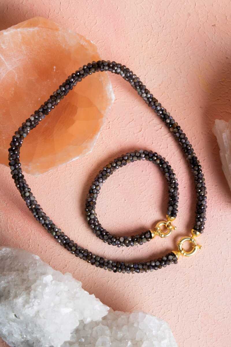 El İşçiliği Örme Labradorit Gümüş Kapama Set (Kolye ve Bileklik) Gizem, dönüşüm ve ruhsal koruma enerjisini hayatınıza davet edin! Labradorit doğal taşının ışıkla dans eden büyüleyici yanardöner ışıltısı (labradoresans), usta El İşçiliği Örme tekniğiyle hazırlanmış bu özel Kolye ve Bileklik Seti'nde birleşiyor. Şık ve güvenli Gümüş Kapama detaylarıyla tamamlanan bu set, size sürekli ruhsal gelişim, sezgisel netlik ve negatif enerjilere karşı güçlü bir koruma sağlayan mistik bir enerji kaynağıdır. Labradorit Taşının Büyüleyici Faydaları ve Enerjisi Ruhsal Koruma Kalkanı: Labradorit, auranın enerji sızıntılarına karşı güçlü bir koruyucusudur. Negatif enerjiyi ve psikolojik stresi nötralize etmeye yardımcı olur. Gizem ve Sezgi: "Büyücü Taşı" olarak bilinir; sezgisel yetenekleri, psişik farkındalığı ve ruhsal aydınlanmayı güçlendirir. Dönüşüm ve Kararlılık: Değişim dönemlerinde destek olur, korku ve güvensizliği dağıtarak özgüveni artırır. Yanardöner Işıltı: Işık açısına göre değişen mavi, yeşil, altın ve mor tonlardaki ışıltısı, onu eşsiz ve göz alıcı kılar. El İşçiliği ve Gümüşün Mükemmel Uyumu Ustalıkla Örülmüş Tasarım: Her bir Labradorit tanesinin özenle birleştirildiği El İşçiliği Örme tekniği, setin enerjisini güçlendirir ve cilde yumuşak, konforlu bir temas sağlar. Gümüş Kapama Güvencesi: Yüksek kaliteli Gümüş Kapama Aparatları, sete güvenli ve sağlam bir kilit sistemi sağlarken, Labradorit'in derin tonlarıyla lüks ve estetik bir kontrast oluşturur. Tam Set Etkisi: Kolye ve bilekliğin birlikte kullanımı, Labradorit'in mistik ve koruyucu enerjisini vücudunuzun farklı noktalarında yoğunlaştırarak etkisini maksimize eder.