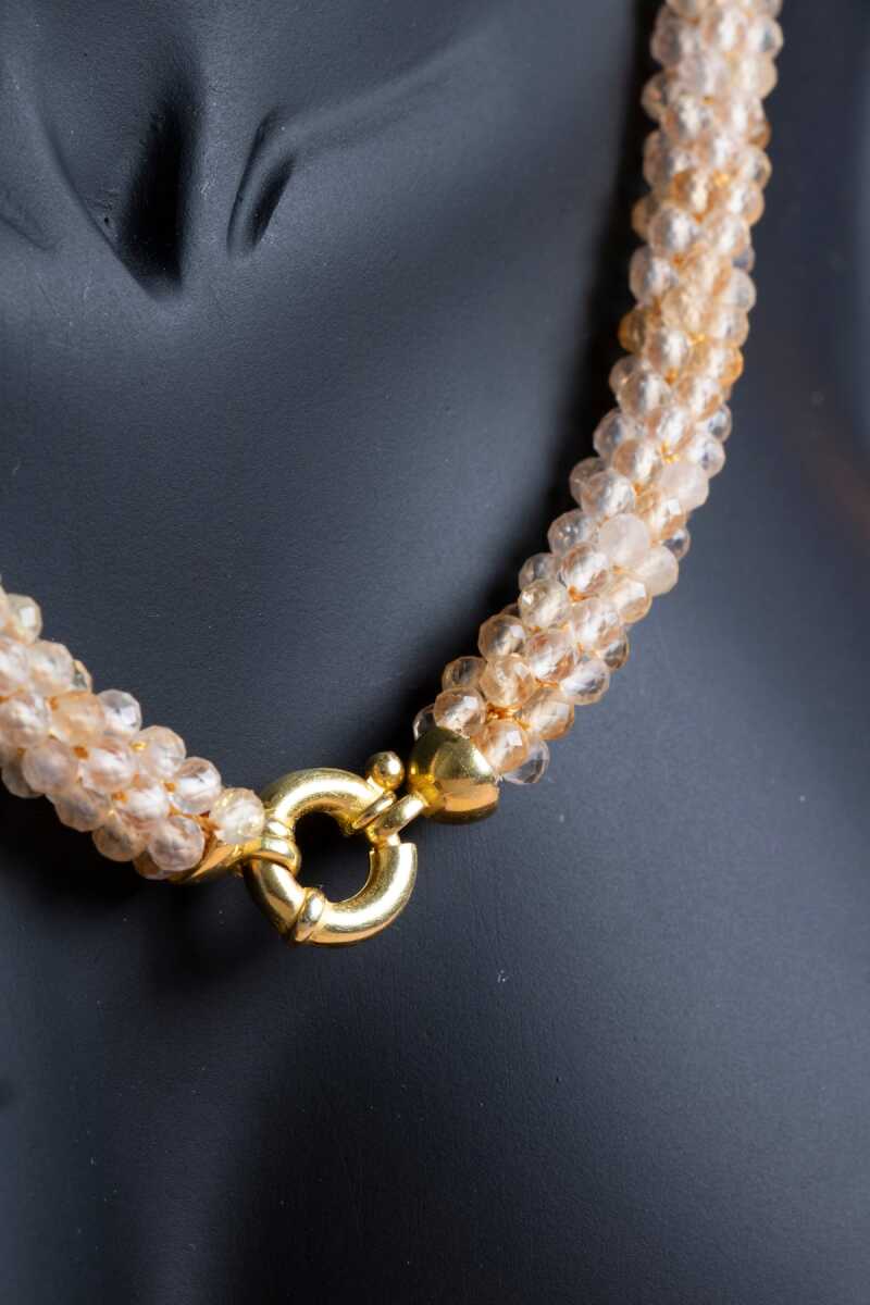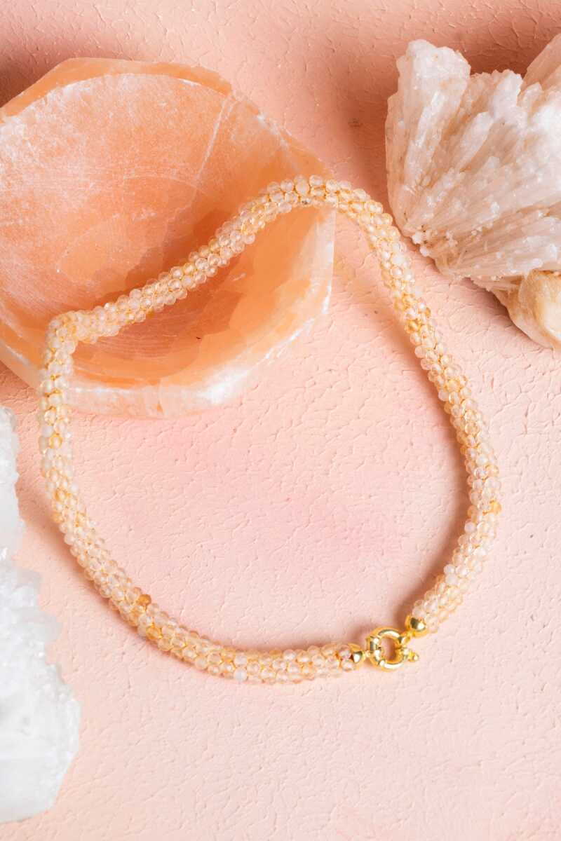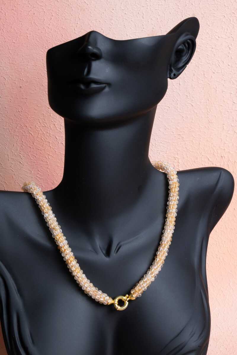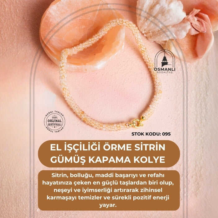 Sertifikalı El İşçiliği Örme Sitrin Gümüş Kapama Kolye (SK:095)