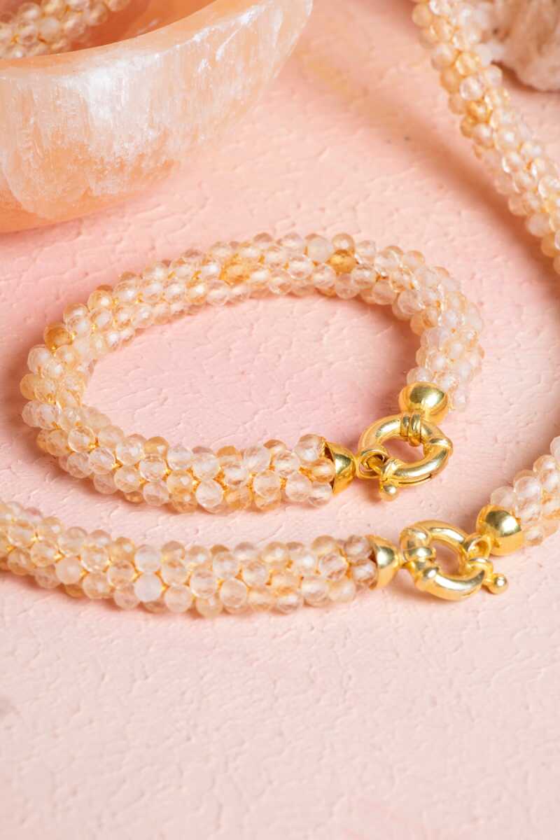 El İşçiliği Örme Sitrin Gümüş Kapama Set (Kolye ve Bileklik) Bolluğu, neşeyi ve güneşin pozitif enerjisini hayatınıza davet edin! Sitrin doğal taşının canlı sarı ışıltısı ve bereketi, usta El İşçiliği Örme tekniğiyle hazırlanmış bu özel Kolye ve Bileklik Seti'nde birleşiyor. Şık ve güvenli Gümüş Kapama detaylarıyla tamamlanan bu set, size sürekli yüksek enerji, iyimserlik ve refah sağlayan güçlü bir enerji kaynağıdır. Sitrin Taşının Büyüleyici Faydaları ve Enerjisi Bolluk ve Refah: Sitrin, "Tüccar Taşı" olarak bilinir. Bolluğu, maddi başarıyı ve refahı hayatınıza çekmeye yardımcı olan en güçlü taşlardandır. Neşe ve İyimserlik: Güneş enerjisini temsil eder; neşeyi, canlılığı ve pozitifliği artırır. Zihinsel karmaşayı temizler. Enerji Temizleyici: Negatif enerjiyi emmek yerine dönüştürdüğü için temizlenmeye ihtiyaç duymaz ve sürekli pozitif enerji yayar. El İşçiliği ve Gümüşün Mükemmel Uyumu Ustalıkla Örülmüş Tasarım: Her bir Sitrin tanesinin özenle birleştirildiği El İşçiliği Örme tekniği, taşların enerjisini güçlendirir ve cilde yumuşak, konforlu bir temas sağlar. Gümüş Kapama Güvencesi: Yüksek kaliteli Gümüş Kapama Aparatları, sete güvenli ve sağlam bir kilit sistemi sağlarken, Sitrin'in canlı sarısıyla modern ve lüks bir kontrast oluşturur. Tam Set Etkisi: Kolye ve bilekliğin birlikte kullanımı, Sitrin'in bolluk ve pozitiflik enerjisini vücudunuzun farklı noktalarında yoğunlaştırarak etkisini maksimize eder.