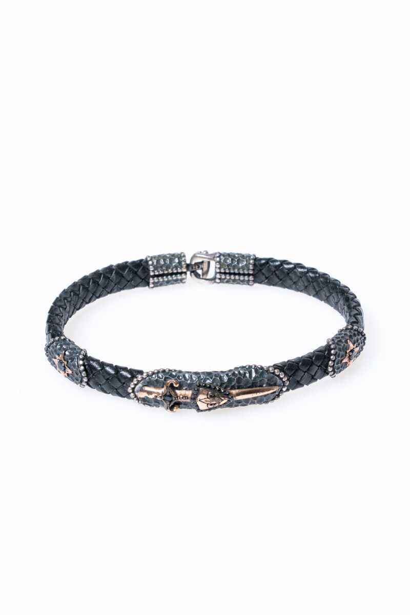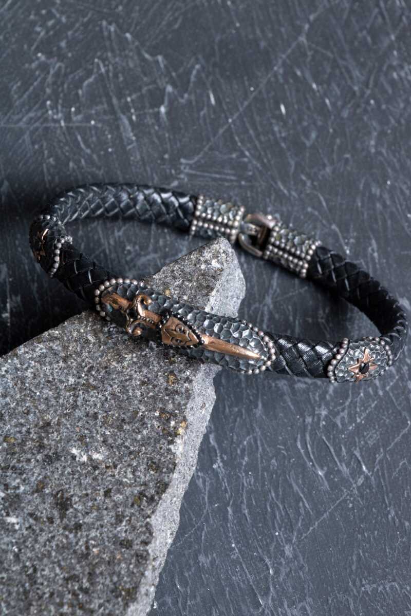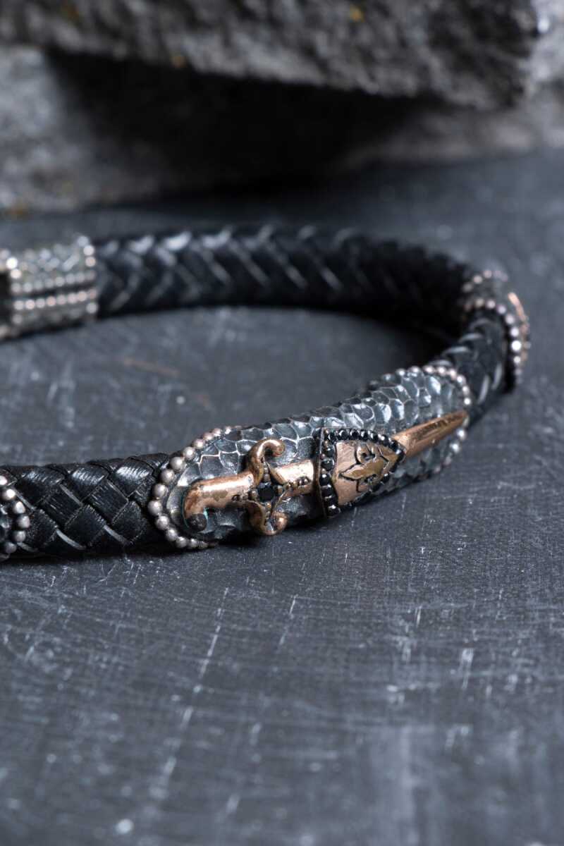 Sertifikalı Gümüş Kılıç Detaylı Deri Bileklik (SK:193)