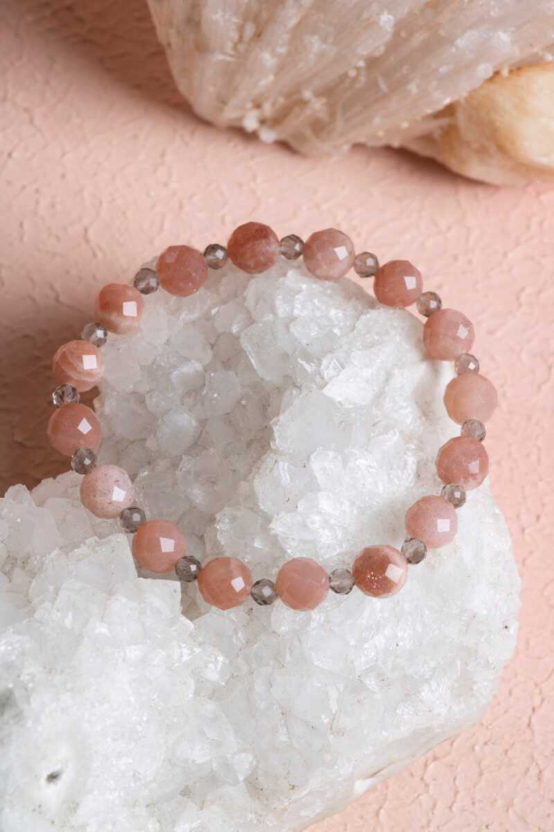 Sertifikalı Güneş Taşı, Pembe Kuvars, Rodokrosit Doğal Taş Bileklik (SK:391)