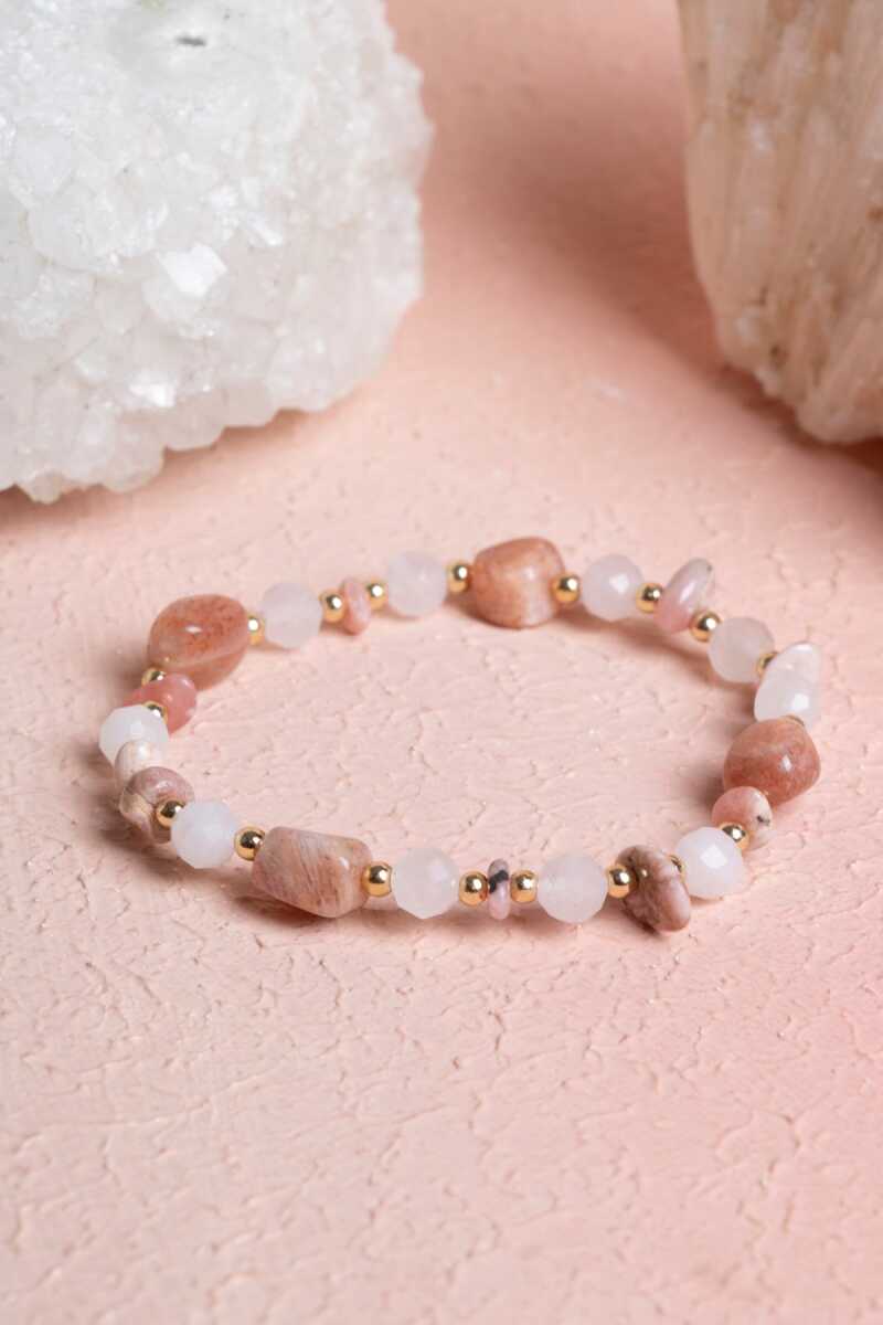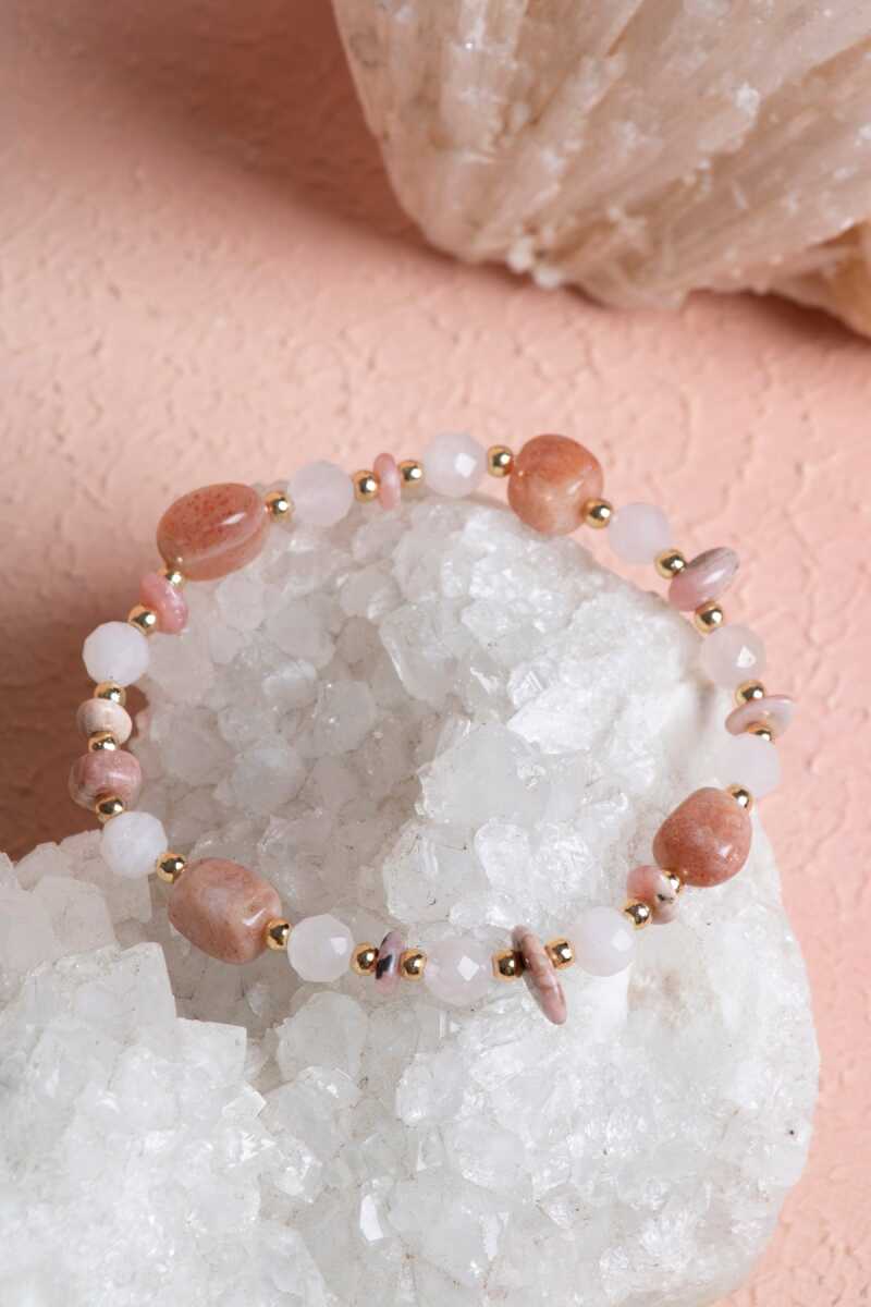 Sertifikalı Güneş Taşı, Pembe Kuvars, Rodokrosit Doğal Taş Bileklik (SK:391)