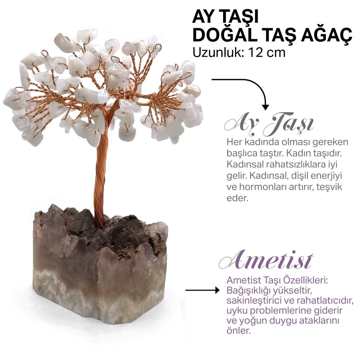 Sertifikalı Hakiki Orijinal Doğal Taş Ay Taşı Ağaç - Alt Kısmı Ametist