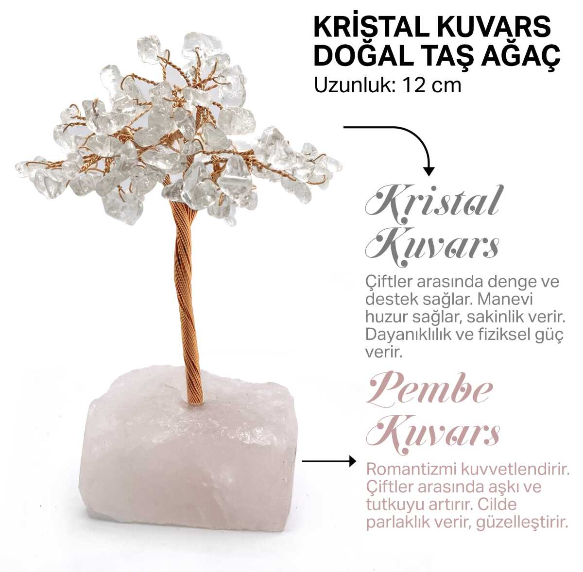 Sertifikalı Hakiki Orijinal Doğal Taş Kristal Kuvars Ağaç - Alt Kısmı Pembe Kuvars