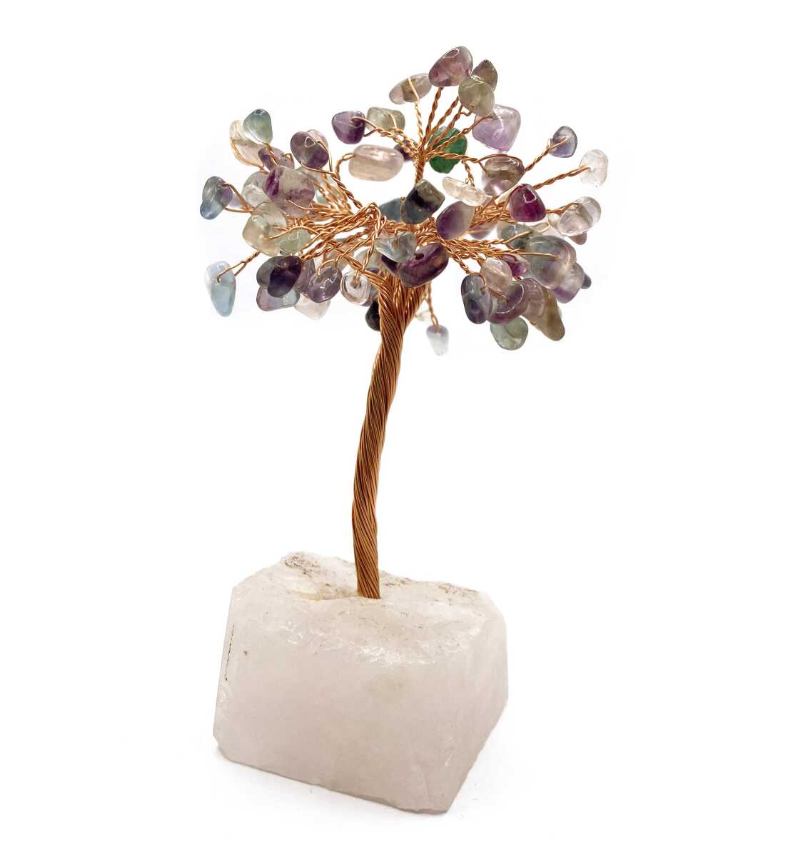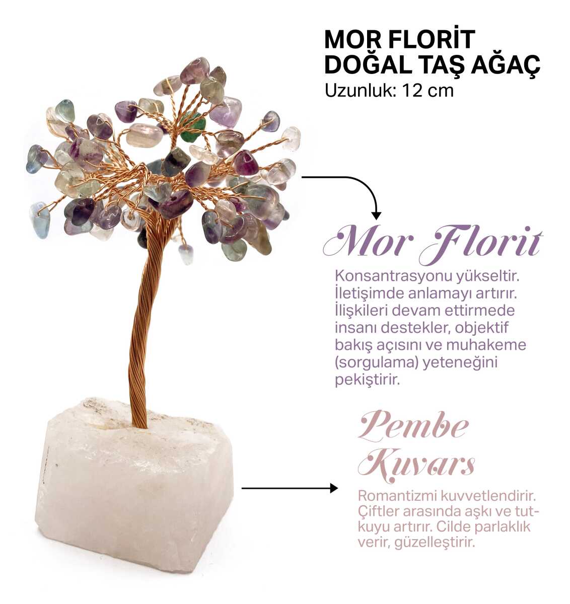 Sertifikalı Hakiki Orijinal Doğal Taş Mor Florit Ağaç - Alt Kısmı Pembe Kuvars