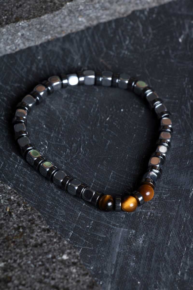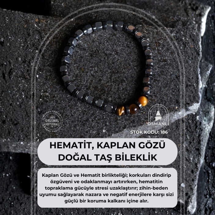 Sertifikalı Hematit, Kaplan Gözü Doğal Taş Bileklik (SK:186)