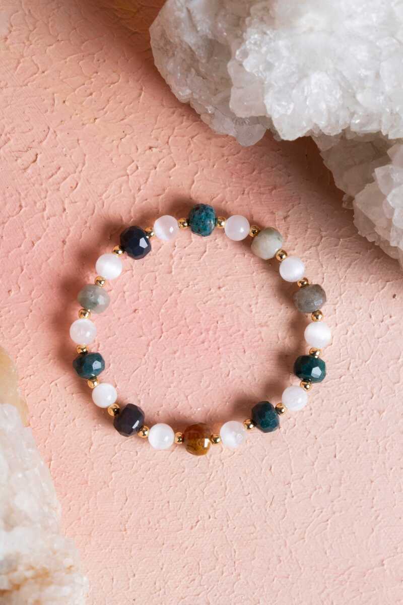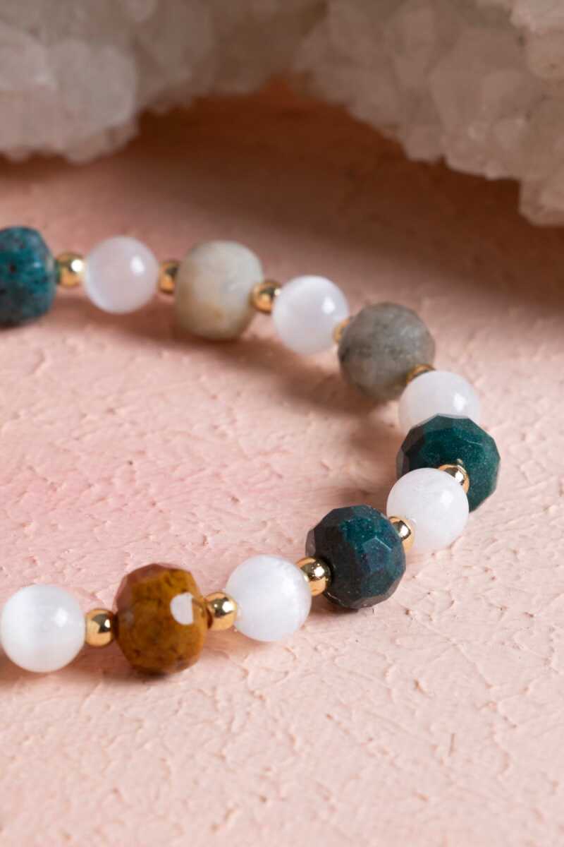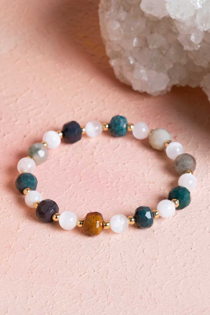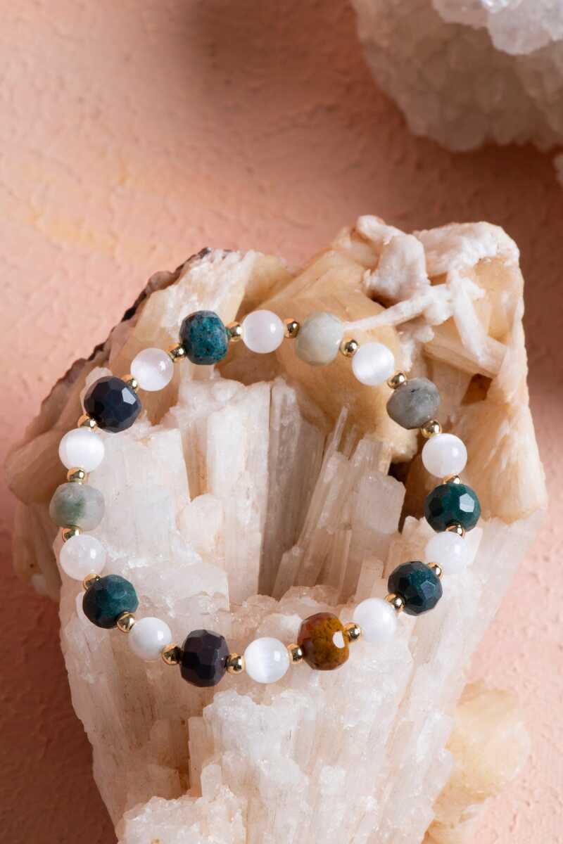 Sertifikalı Amazonit, İnci, Ametist, Hematit Doğal Taş Bileklik (SK:387)