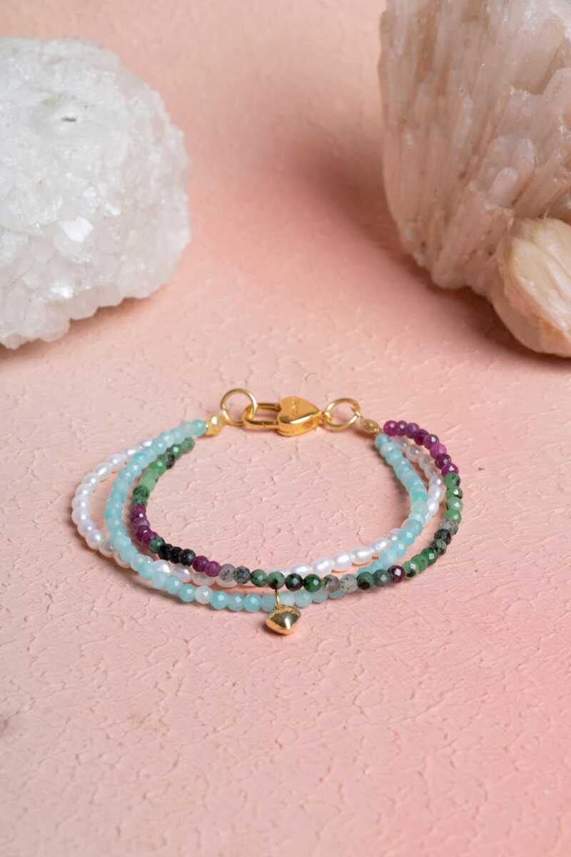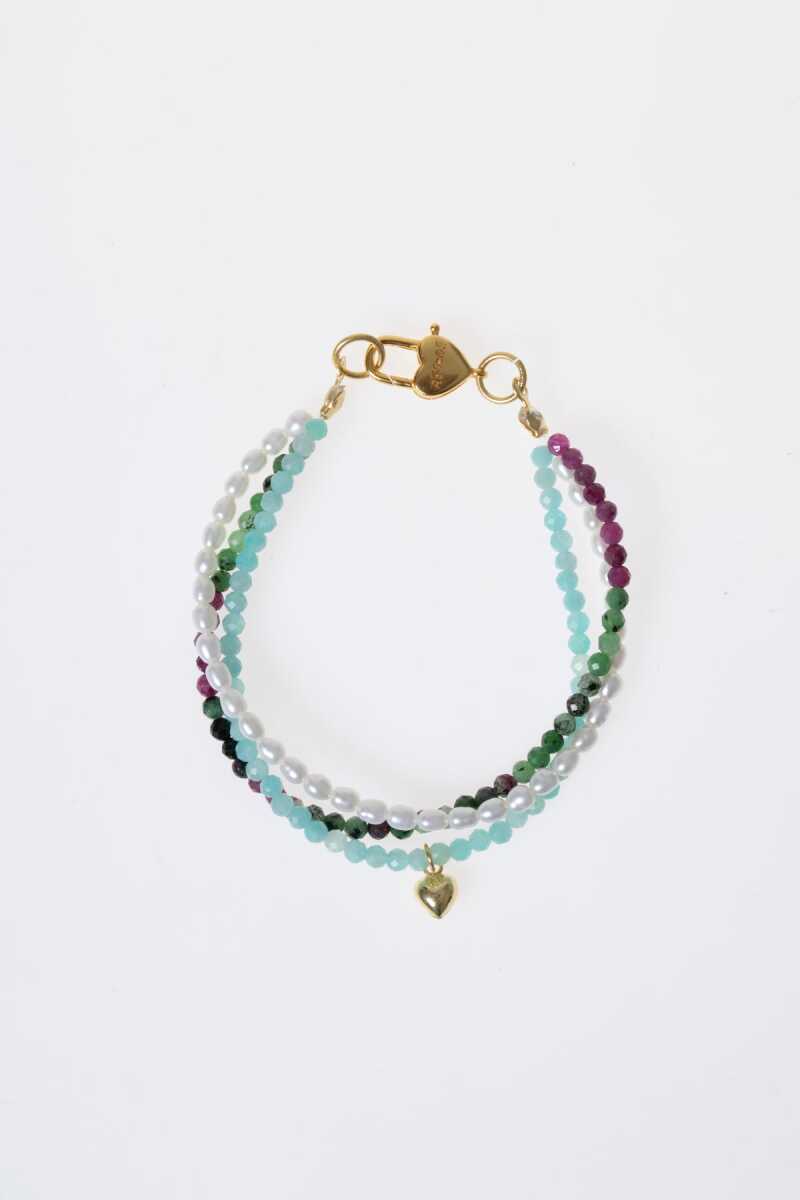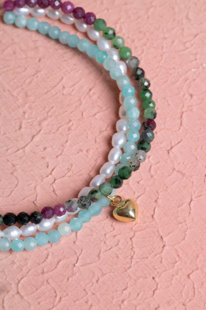Sertifikalı İnci, Amazonit, Anyolit Gümüş Kalp Charmlı Aparatlı ve Kapama Doğal Taş Bileklik (SK:383)