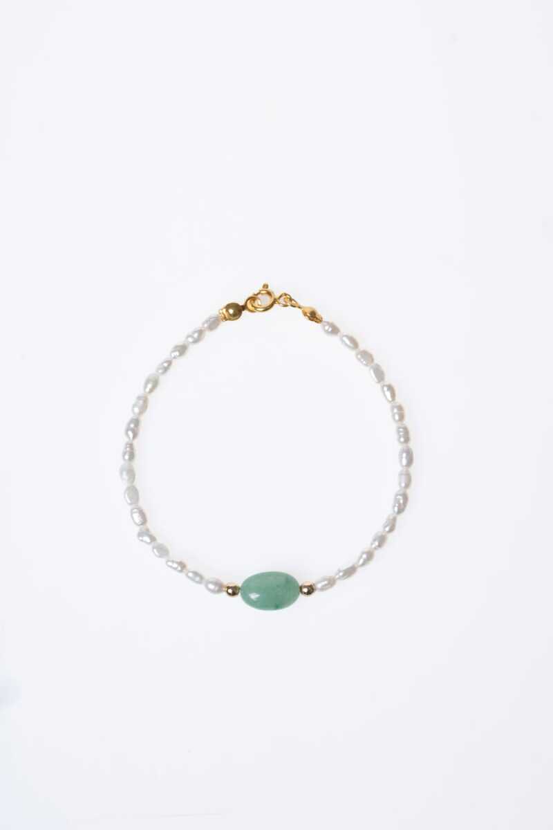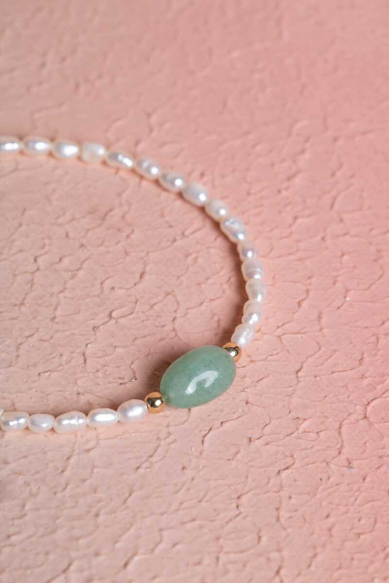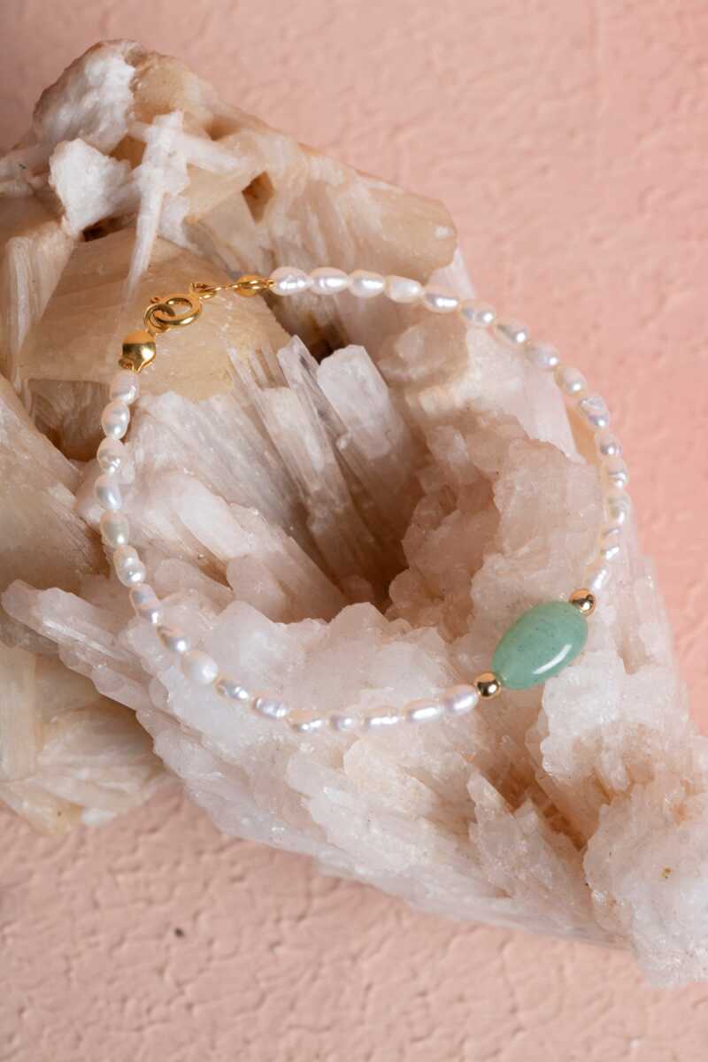 Sertifikalı İnci, Aventurin Gümüş Kapama Doğal Taş Bileklik (SK:067)